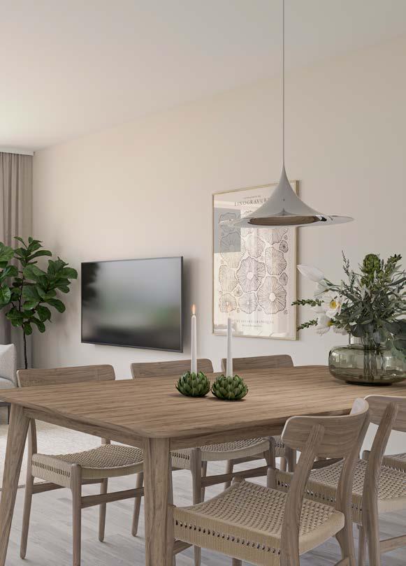 användningsmöjligheter. Här har vi haft stort fokus på det praktiska. Till exempel har i stort sett alla sovrum en inbyggd förvaringsenhet – de flesta i form av skjutdörrsgarderober som på ett optimalt sätt använder utrymmet. Även möblerbarheten är maximerad utifrån rummens ytor. Men här finns också upplevelsevärden – i form av dagsljusinfall och genomblickar, från rum till rum och vidare ut mot omgivningarna.