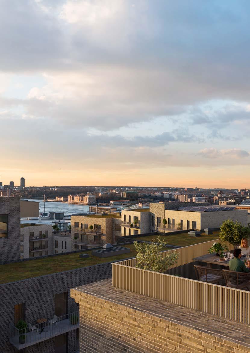 Högst upp på våning sju, åtta och nio finns de exklusiva Roof Top-lägenheterna med generösa terrasser – en privat plats under bar himmel med storslagna vyer.