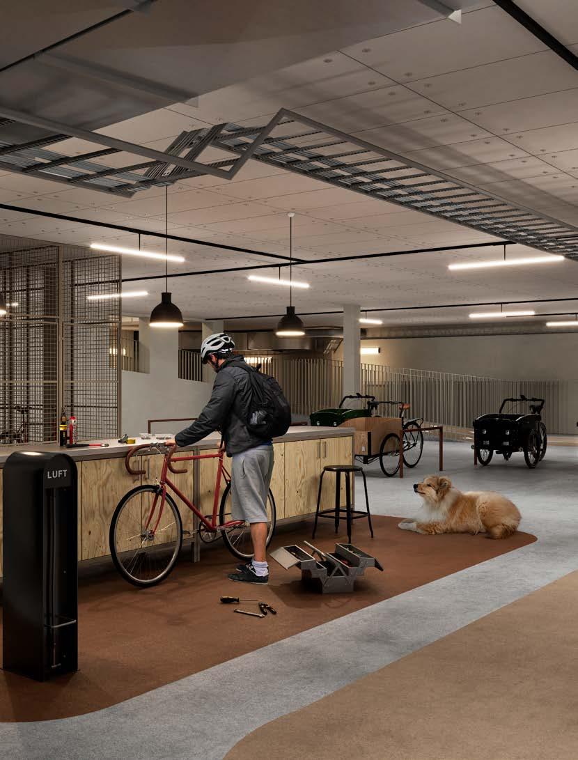 Här är det enkelt att vara cyklist. I cykelgaraget är cykeln skyddad för väder och vind och du har en varm och skön plats att vara på när du tar hand om den.
