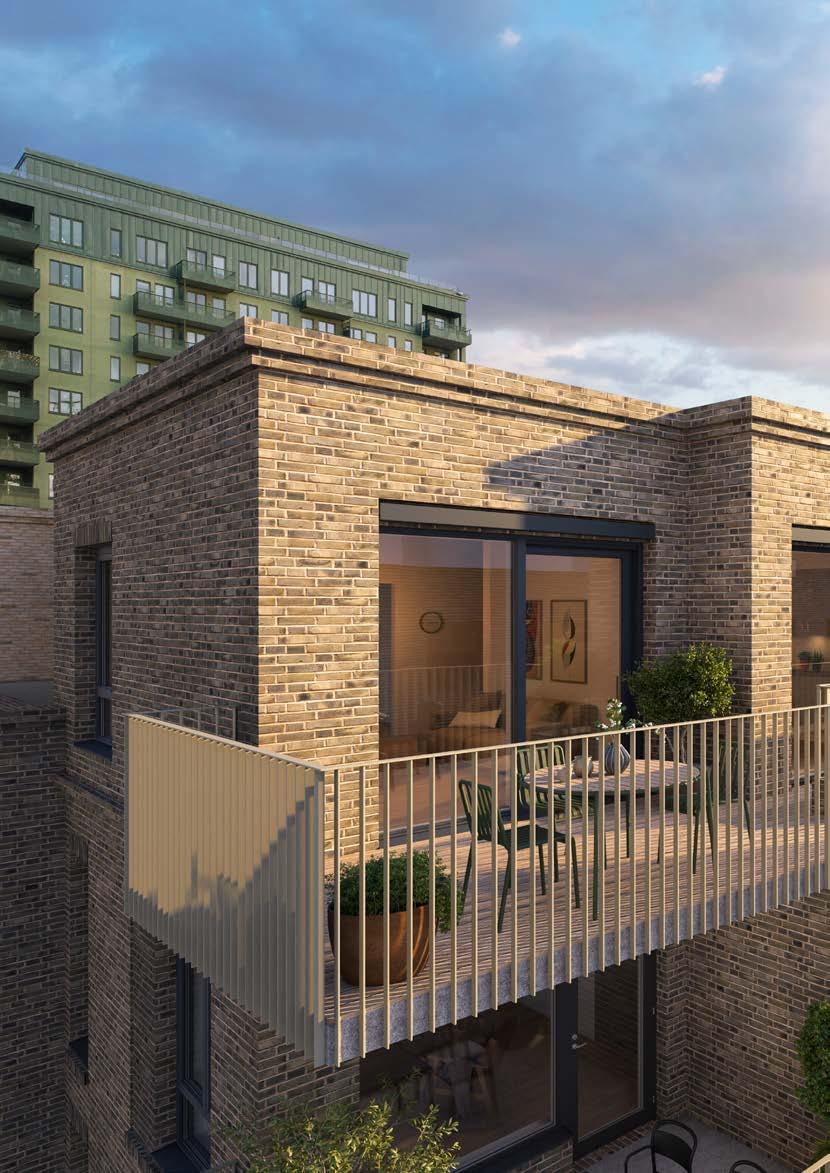 Den grönskande innergården ligger avskilt en våning upp, exklusivt tillgänglig endast för de boende. Här har du en oas att hämta kraft i, ett ställe att umgås på, eller att hitta en avskild hörna där du får vara för dig själv.