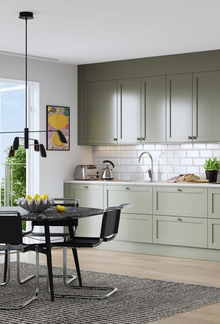 Ett trivsamt kök med mjuka dova färger hämtade från naturen ger dig en rofylld miljö. De släta ytorna ger en lugn bakgrund till mat, köksredskap och personliga inredningsdetaljer.