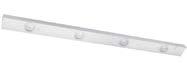 Badrum: Vita spotlights, infällda i tak med dimmer. Grundutförande