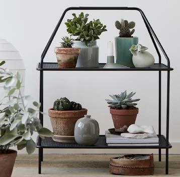 Inreda med växter Växter och sättet vi visar dem på kan verkligen förstärka stilen, och det har aldrig funnits ett större urval av möbler formgivna just för att inreda med grönska. Piedestaler och vägghängda hyllor ger oss större spelrum vad gäller placeringen, och vi får upp växterna i en dekorativ höjd som också ger dem mer ljus. Små blombord och rullvagnar är också populära sätt att samla växterna på, gärna tillsammans med böcker, tidningar och andra favoritsaker. Från att det enda självklara valet var terrakottakrukan har