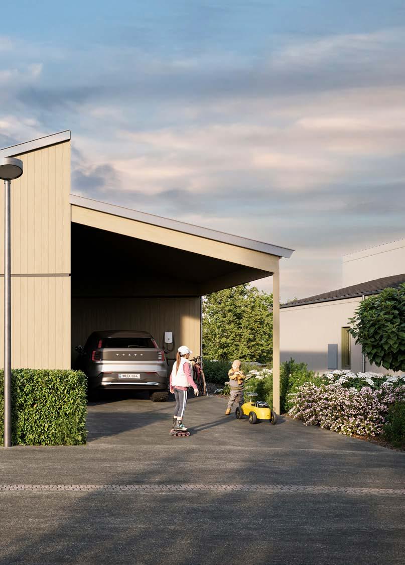 Parkering: Alla bostäder har minst två tillhörande parkeringsplatser. Parkeringsplatsen vid huset är förberedd för installation av laddbox.