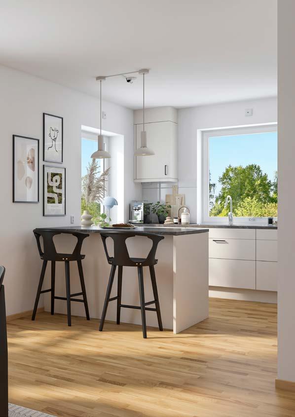 rymmer många olika storlekar och typer av planlösningar, några helt unika. Här finns möjligheter att anpassa sitt boende, i många av lägenheterna kan du till exempel välja att ta bort en vägg för en öppen lösning. Vi har också tänkt extra mycket på lägenheternas rymd, ljusaxlar och fönstersättningar för att maximera ljus­ och naturinsläpp. Interiört finns det många funktionella fördelar men framförallt handlar det om att ta in naturen och läget i rummen.