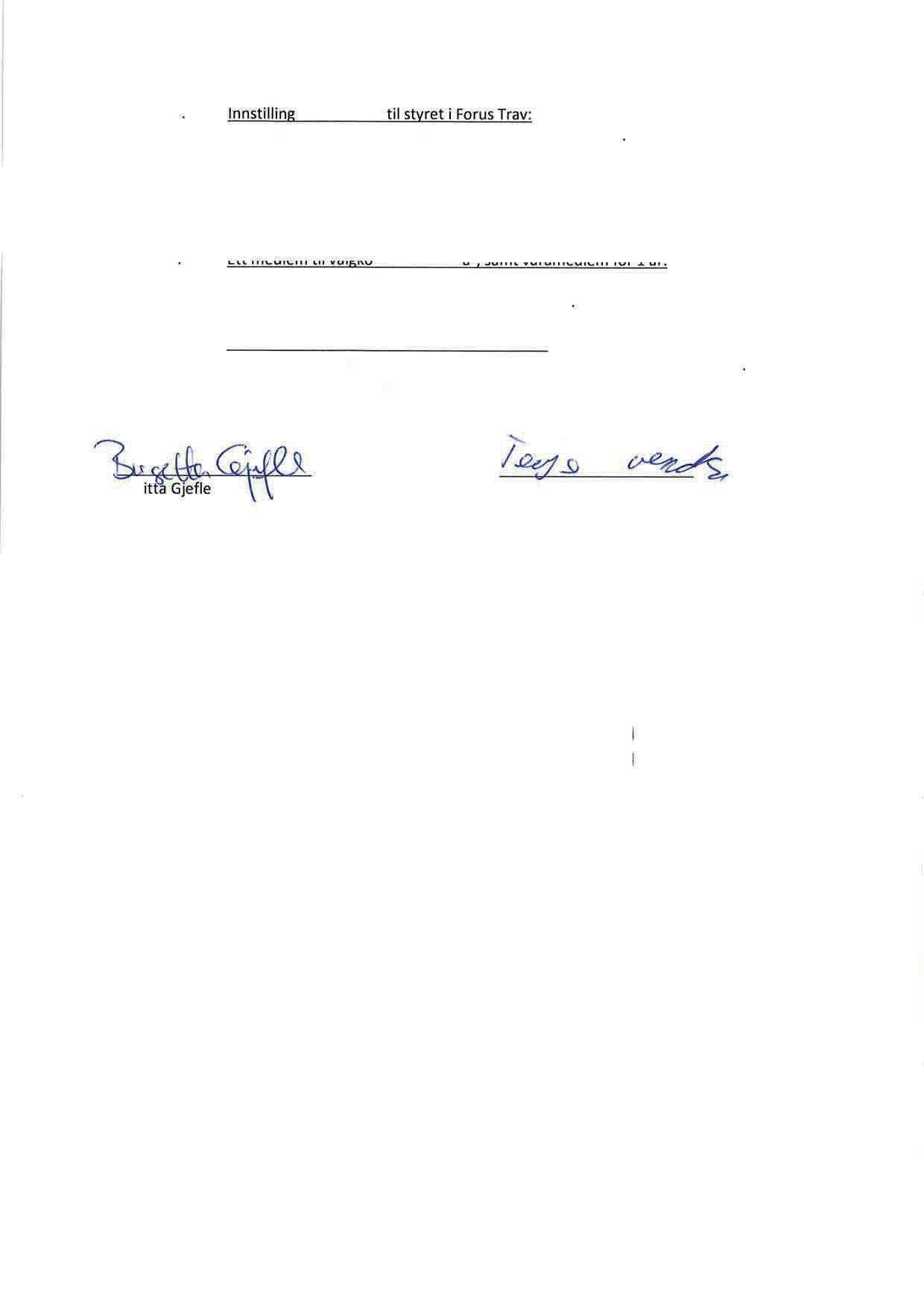 e. Innstilling på 1 styremedlem for 2 år, samt 1 varamedlem for 1 år i Forus Trav AS.