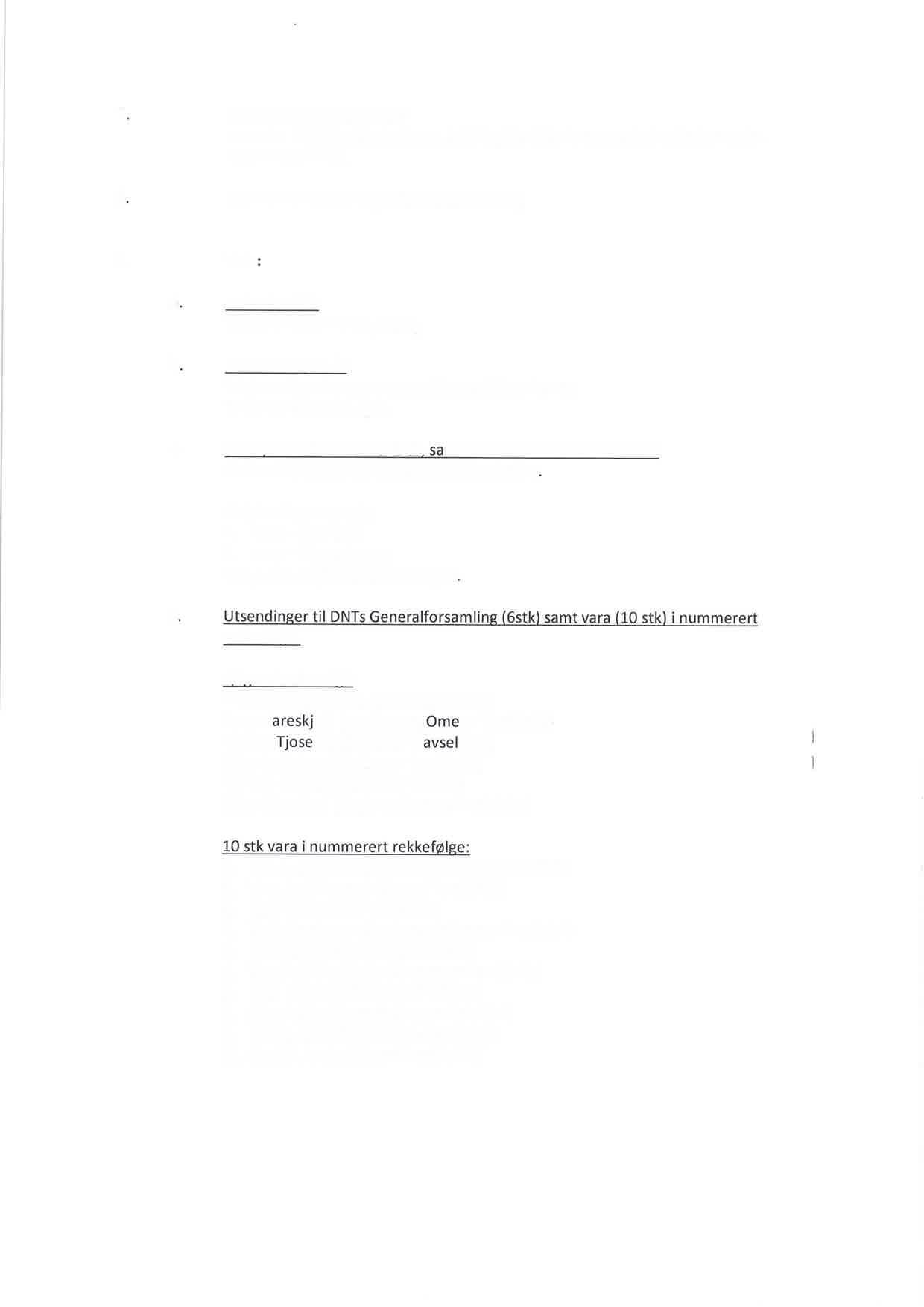 d. Utsendinger til DNTs generalforsamling, 6 stk, samt 12 stk vara i nummerert rekkefølge.