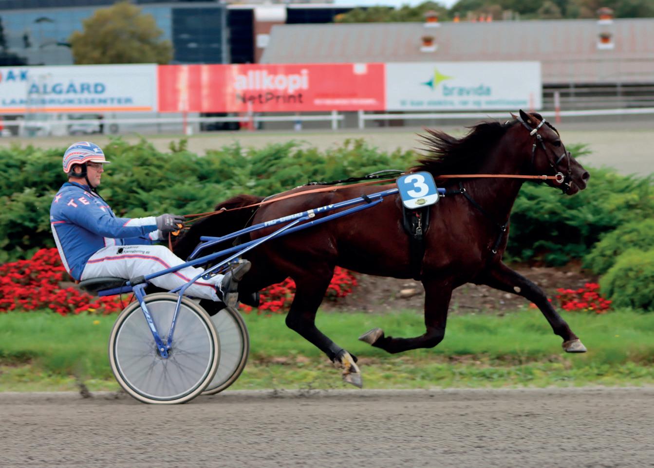 5 år Brun V v. Orlando Vici (FR) e. Nagille (S) v. Coktail Jet Oppdr.: Per Erik Hagen Eier: Team Trooper & John Sigve Tjelta Rød m/svart skulder-/sidefelt, rekl