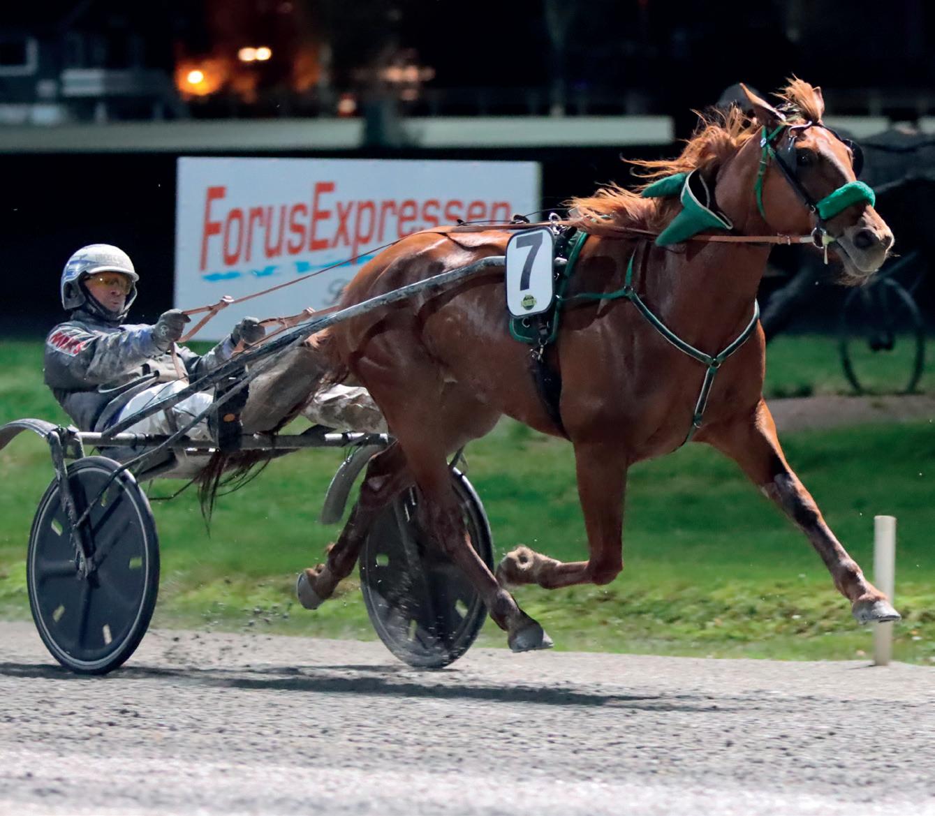10 år Rød V v. Ruskens Solve e. Fidjetuns Frida v. Alise Lindal Evensen Alise Lindal Evensen/Travskolen Sørlandet Lilla m/to grå hestesko