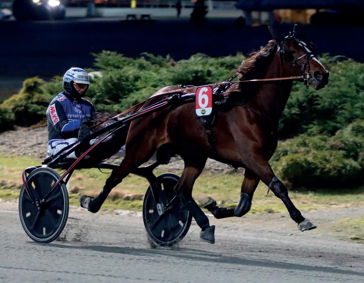 6 år Brun HP v. Smooth Moves (US) e. Nona Hanover (US) v. Speedy Crown Oppdr.: Linn K.K. Johansen & Jacob H. Kollerud Eier: Victoria Tjelhovd Marthinsen /Kleppe Svart m/blått sidefelt&ermr,hv.søm,rek