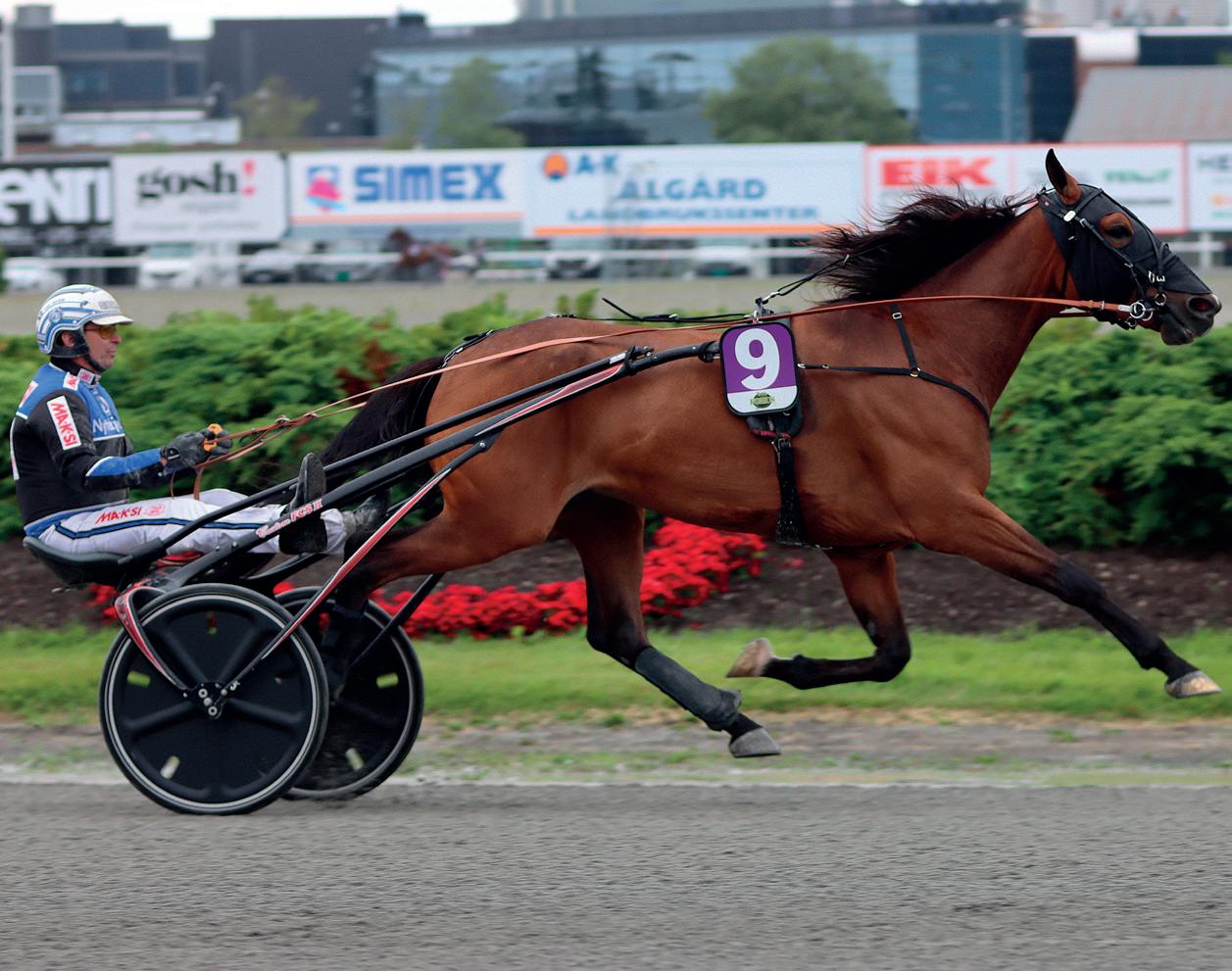 6 år Brun HP v. Smooth Moves (US) e. Nona Hanover (US) v. Speedy Crown Oppdr.: Linn K.K. Johansen & Jacob H. Kollerud Eier: Victoria Tjelhovd Marthinsen /Kleppe Rød m/svart skulder-/sidefelt, rekl