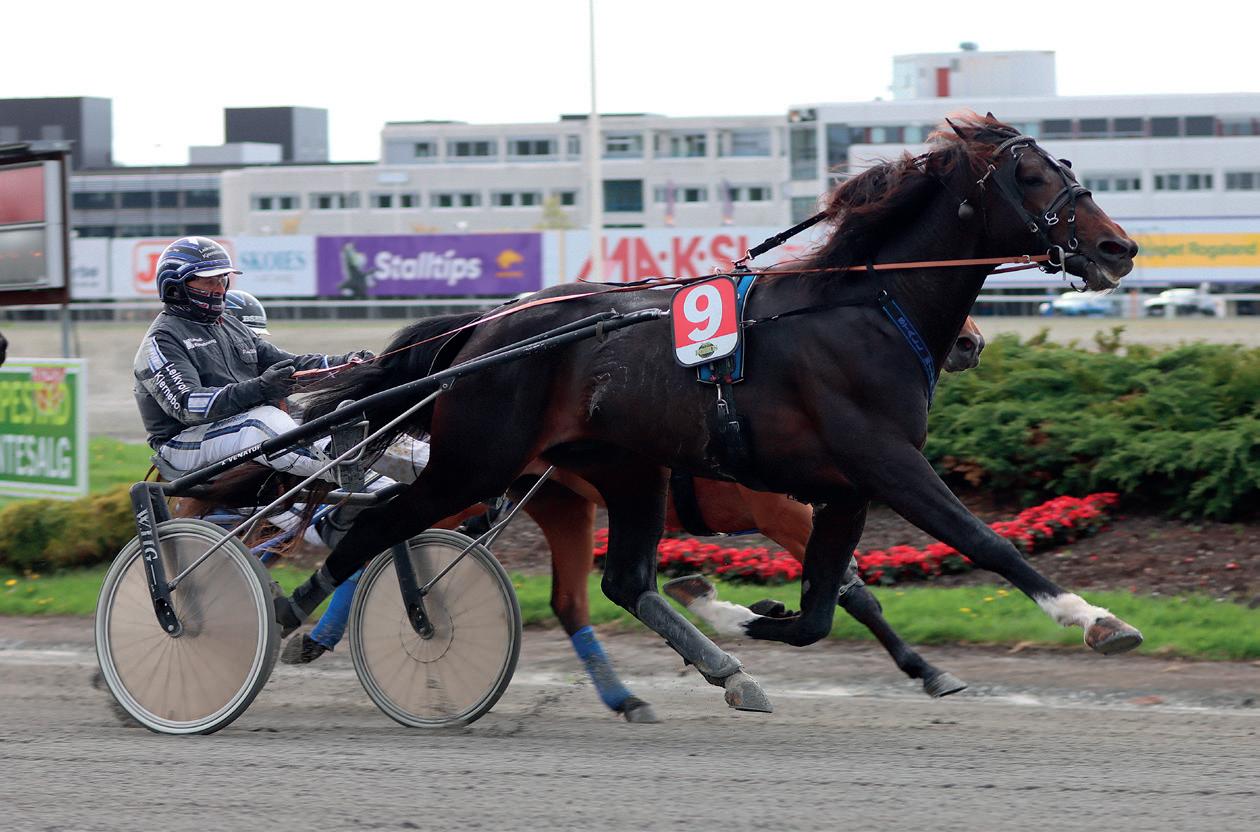 3 år Brun HP v. Maharajah (S) e. Rita Sensation v. Dahir de Prelong Oppdr.: Gudmund Haugstad Eier: Arve Risa /Nærbø Svart m/rød og hvit skldklaff. rekl.