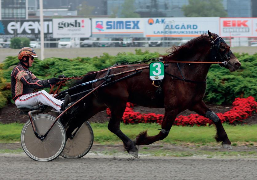 6 år Brun HP v. Exploit Caf (IT) e. Faithfully Yours (US) v. Donerail Oppdr.: Kim Rene Gramstad & Else-B. Gramstad Eier: Leon Larsen /Sandnes rød m/tre svarte stolper/ermstr.+rekl.