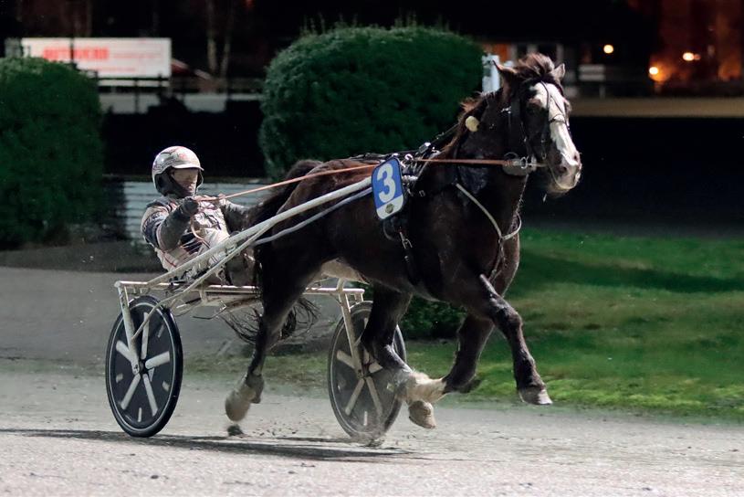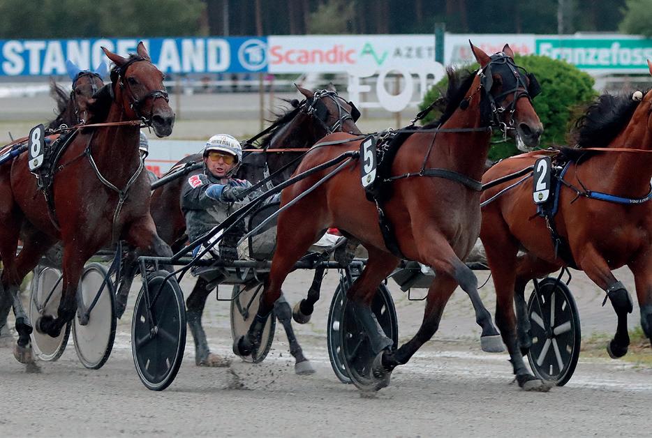 3 år Brun H v. Muscle Hill (US) e. Personal Hanover (US) v. Yankee Glide Oppdr.: Thaihester Egersund AB Eier: N. Munkhaugen Holding AS /Melhus Rød m rød/gull/hvit V, gull sidef, rek