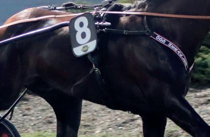 8 år M.Brun H v. Credit Winner (US) e. Silver Springs* (US) v. Yankee Glide Oppdr.: U.S.A. Eier: Sverige Svart m/gullbånd,rød søm,rekl.