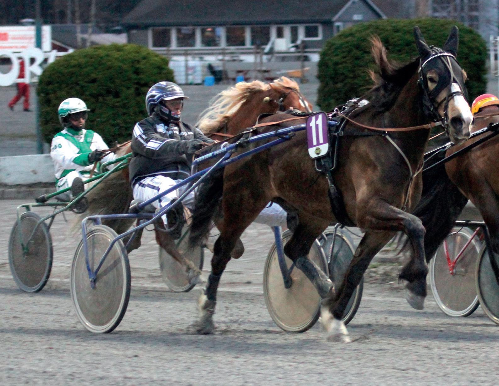 8 år Brun V v. Revenue (S) e. Makes Men Blush (US) v. Yankee Glide Oppdr.: Bjørn Rishaug Eier: Kåre Refsland-Johan Løvdahl Hvit m/brunt sk.stk. & ermer, rekl.