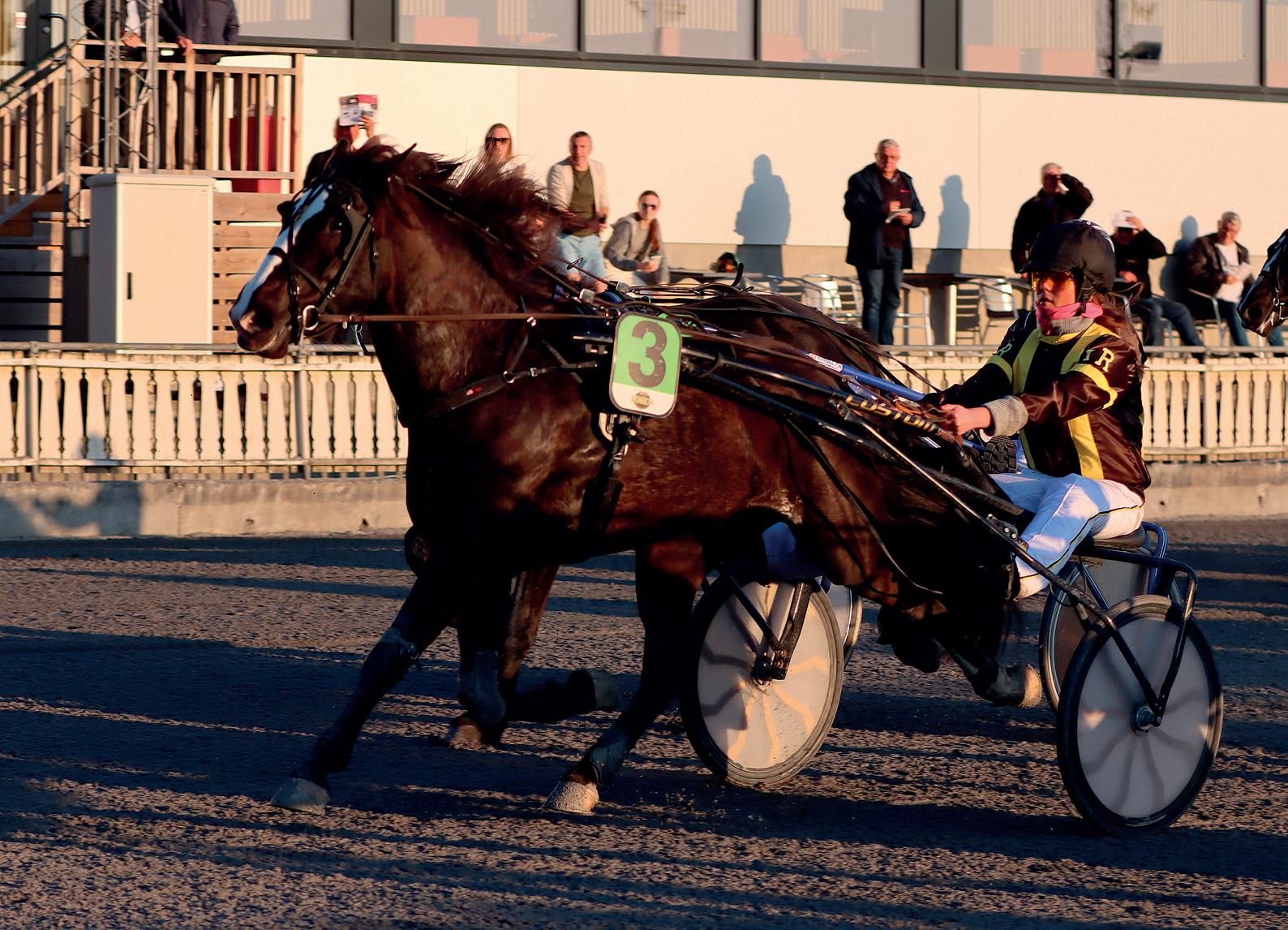 3 år Brun HP v. Papagayo E. e. Black Beauty v. Take Chances Oppdr.: Nils R. Salte Eier: Team Lucky gul m/skrått svart sk.stk. & skråbånd.