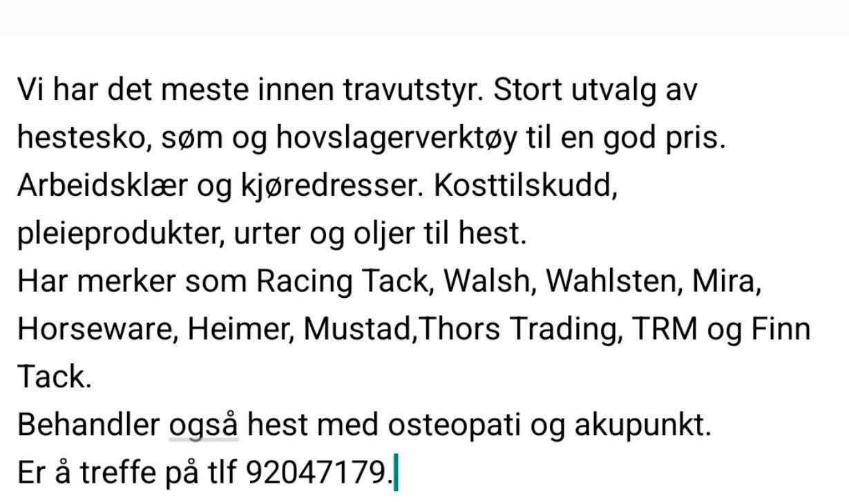 A/S HESTEUTSTYR ER EN SPESIALFORRETNING I TRAVUTSTYR SOM HOLDER TIL I HESTERINGEN PÅ FORUS TRAVBANE