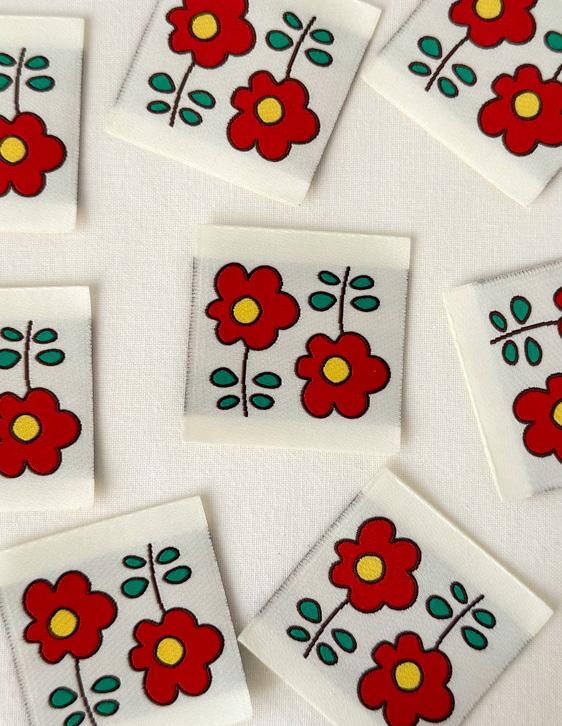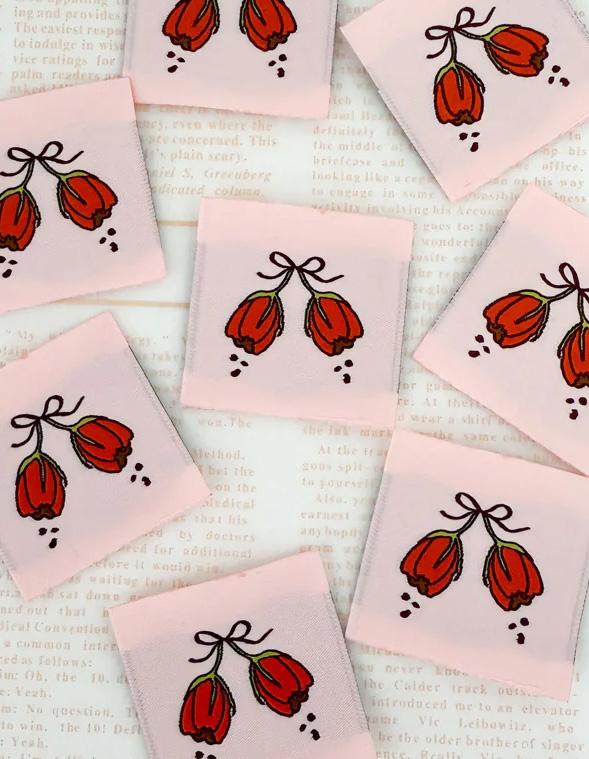 Camellia Woven Labels Set of 8 | 2” x 2”