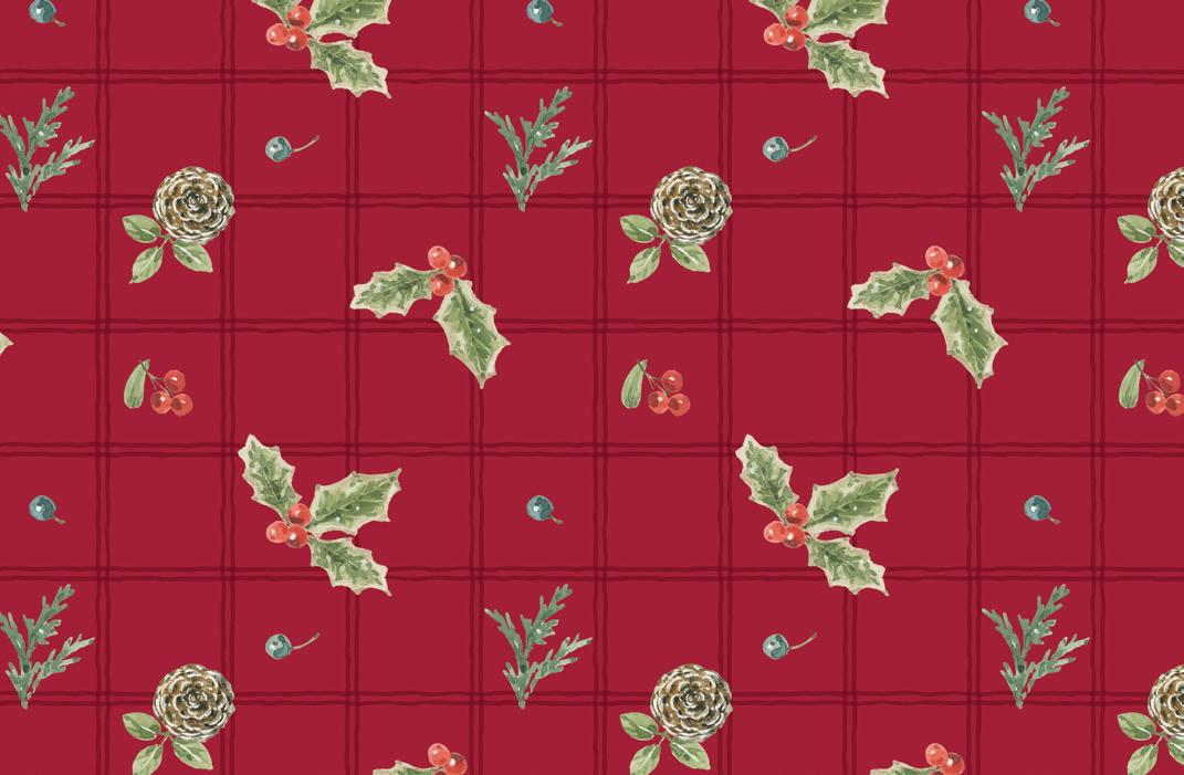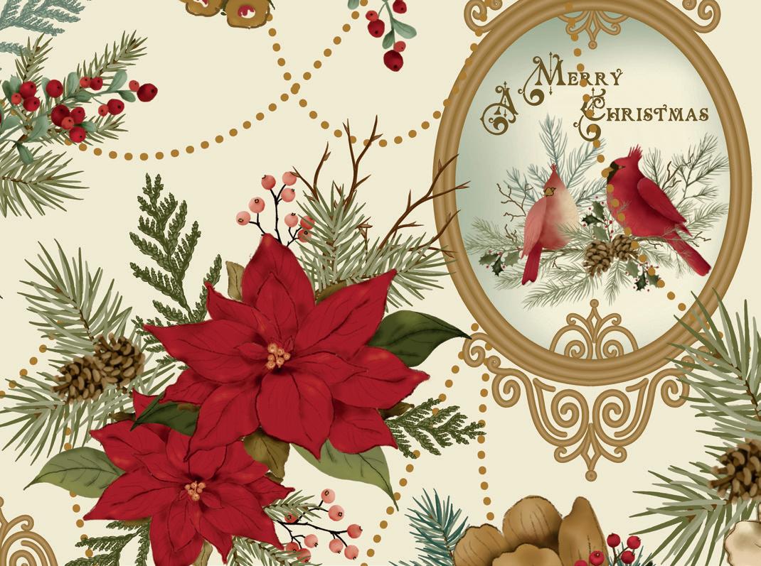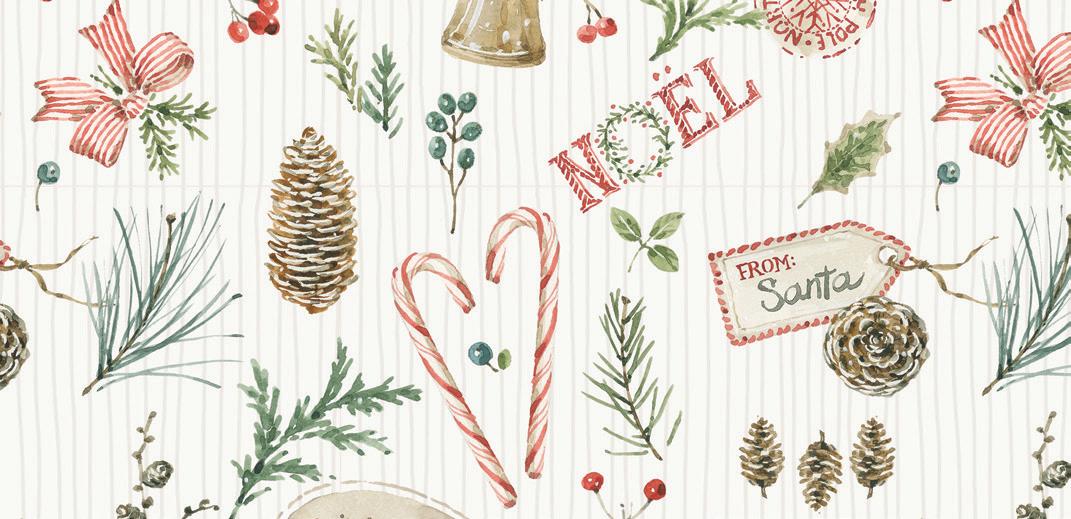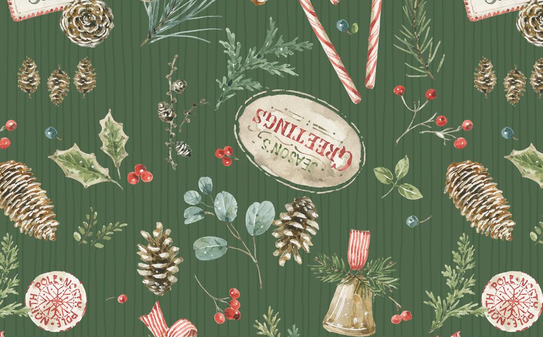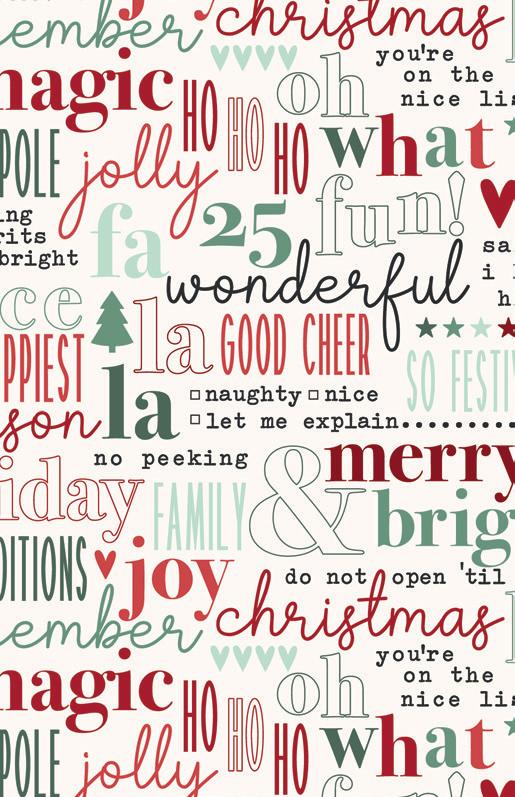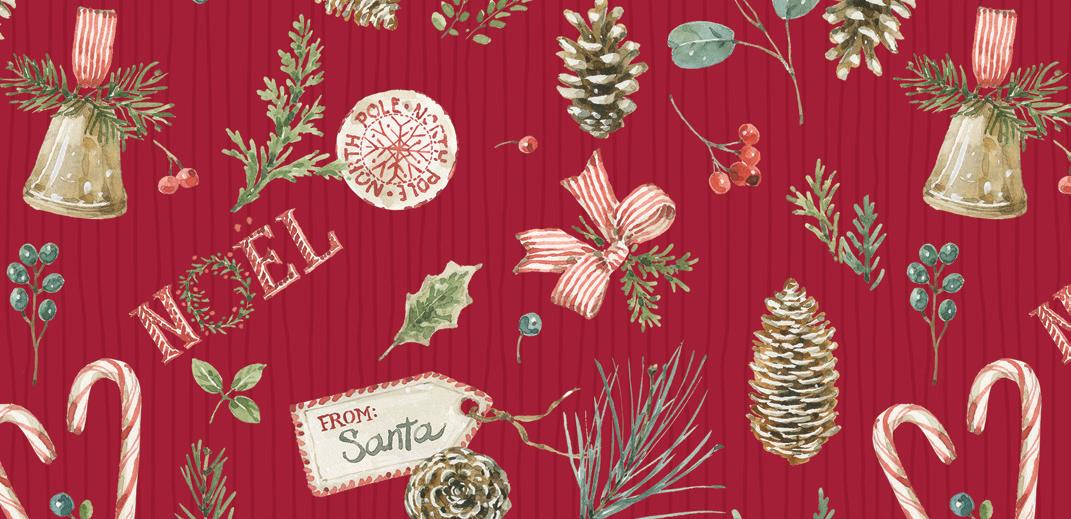 Holiday Spirit by Lisa Audit captures the magic of the season with soft watercolor brushstrokes and timeless holiday motifs. Festive jars and pots overflow with Christmas sprays of holly berries, pinecones, eucalyptus, and evergreen—each one tied with candy cane-striped ribbons and sweet tags from Santa himself In a classic palette of red, green, and cream, this Noël-inspired collection brings warmth, tradition, and a touch of whimsy to your holiday sewing Whether you’re creating quilts, stockings, or handmade gifts, Holiday Spirit is full of seasonal charm and heartfelt cheer .
