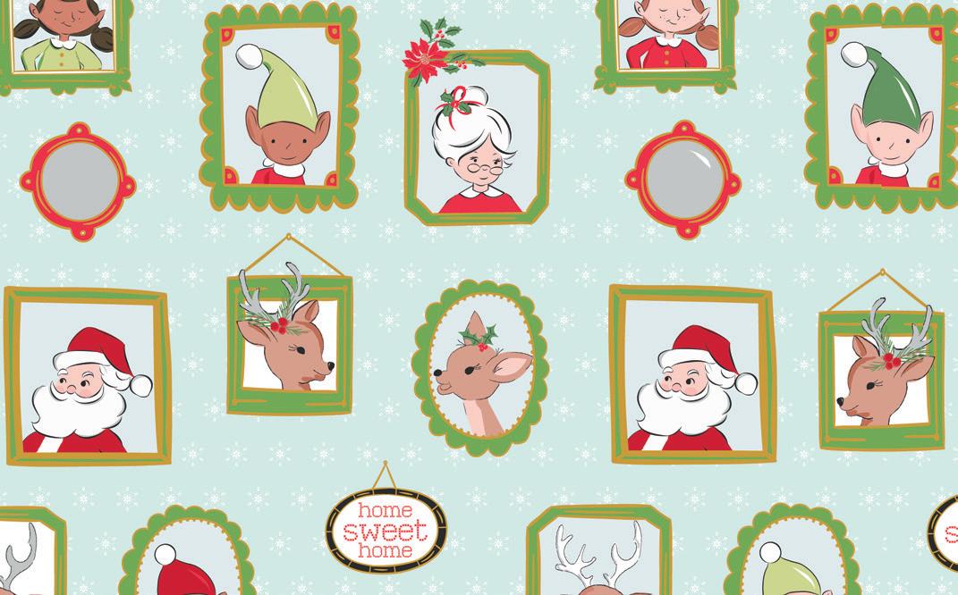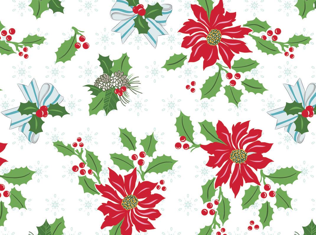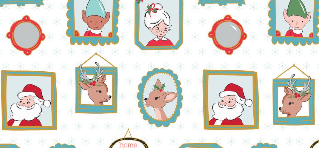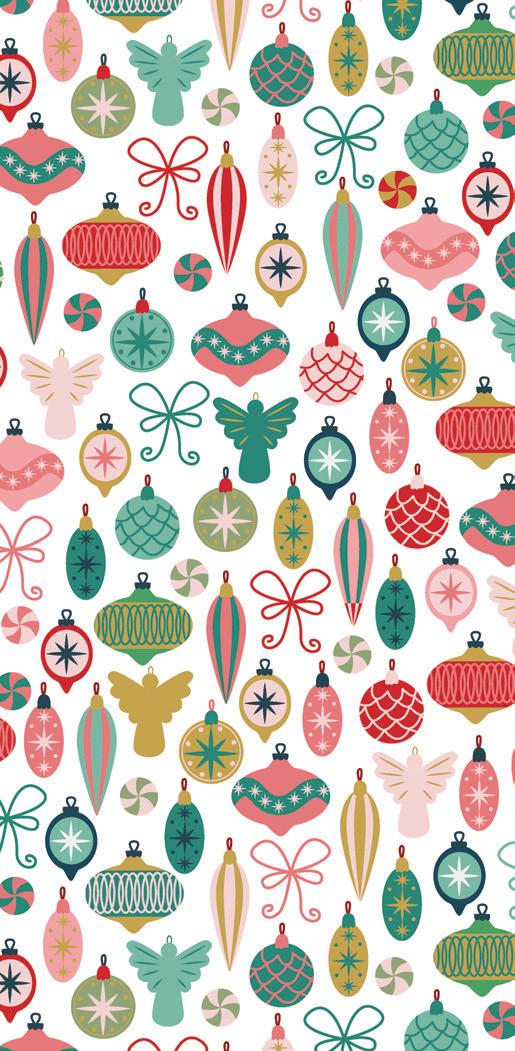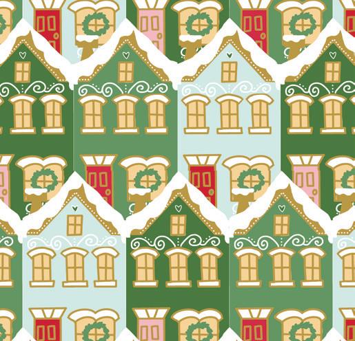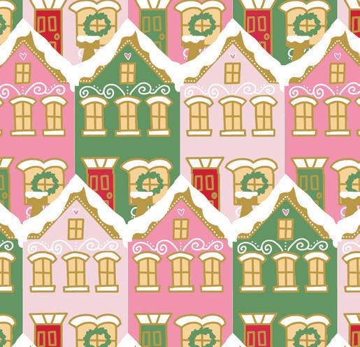 The prints were inspired by my favorite holiday traditions: rows of whimsical houses, vintage-style ornaments, candy canes tied with ribbons, and classic vintage inspired poinsettia florals.
