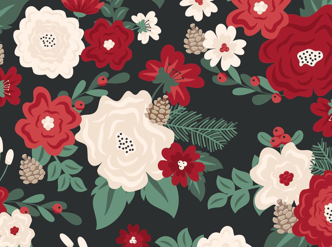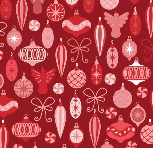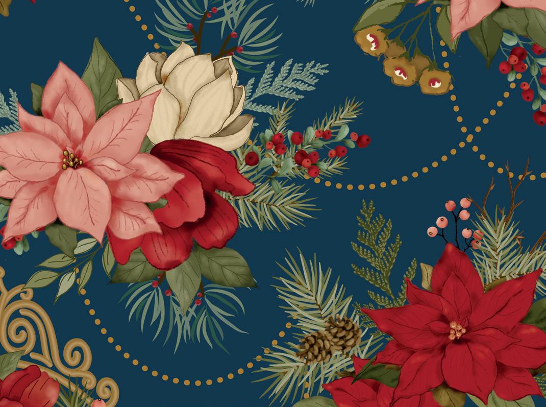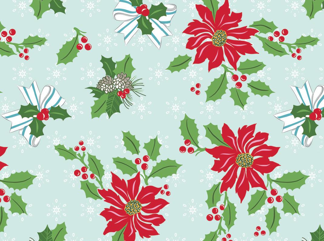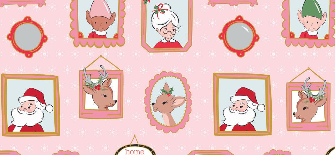 The prints were inspired by my favorite holiday traditions: rows of whimsical houses, vintage-style ornaments, candy canes tied with ribbons, and classic vintage inspired poinsettia florals.