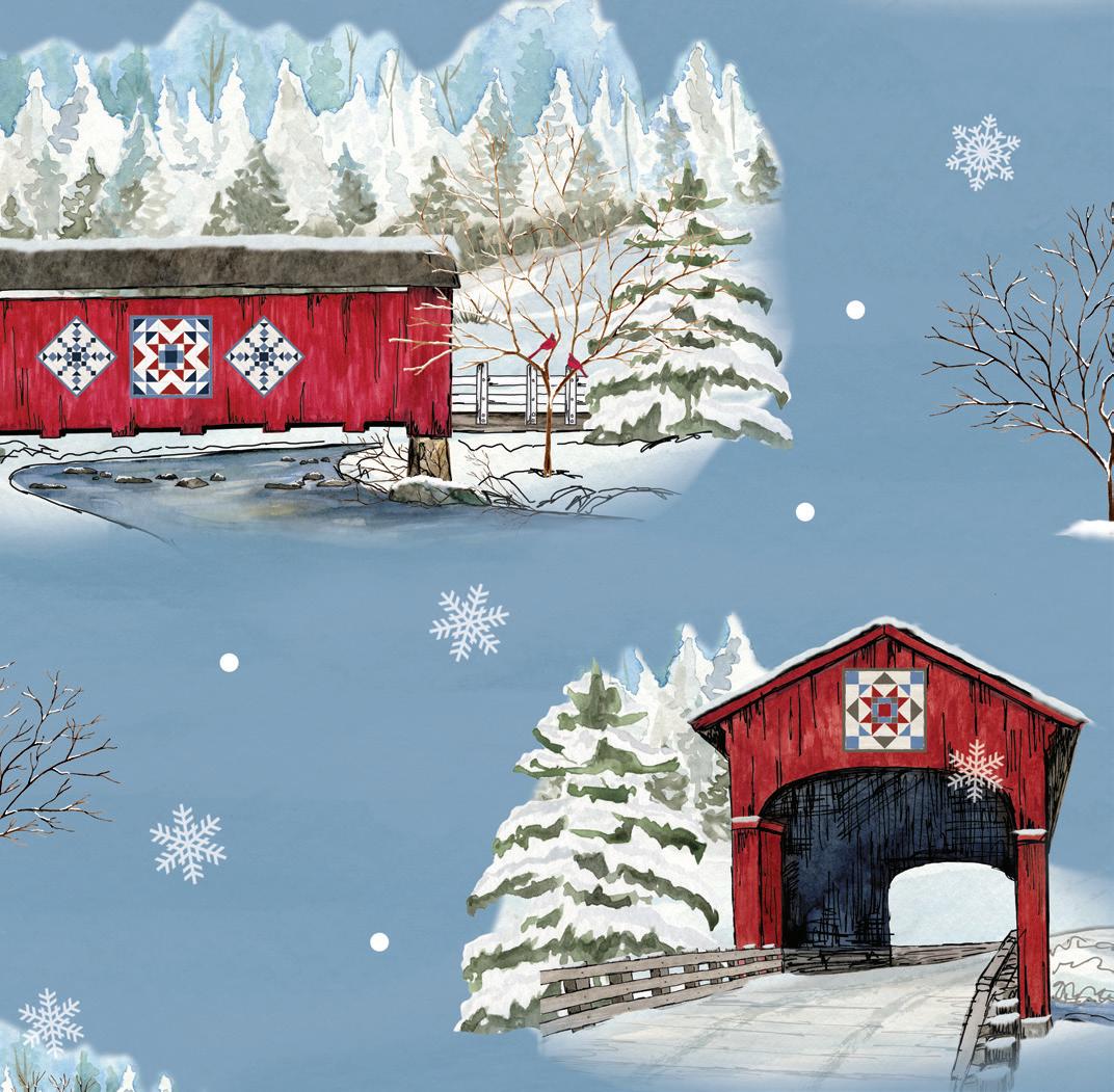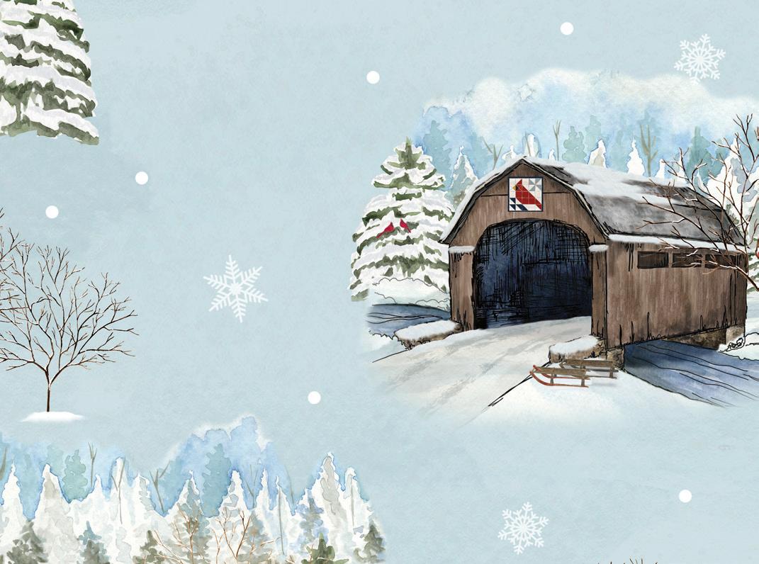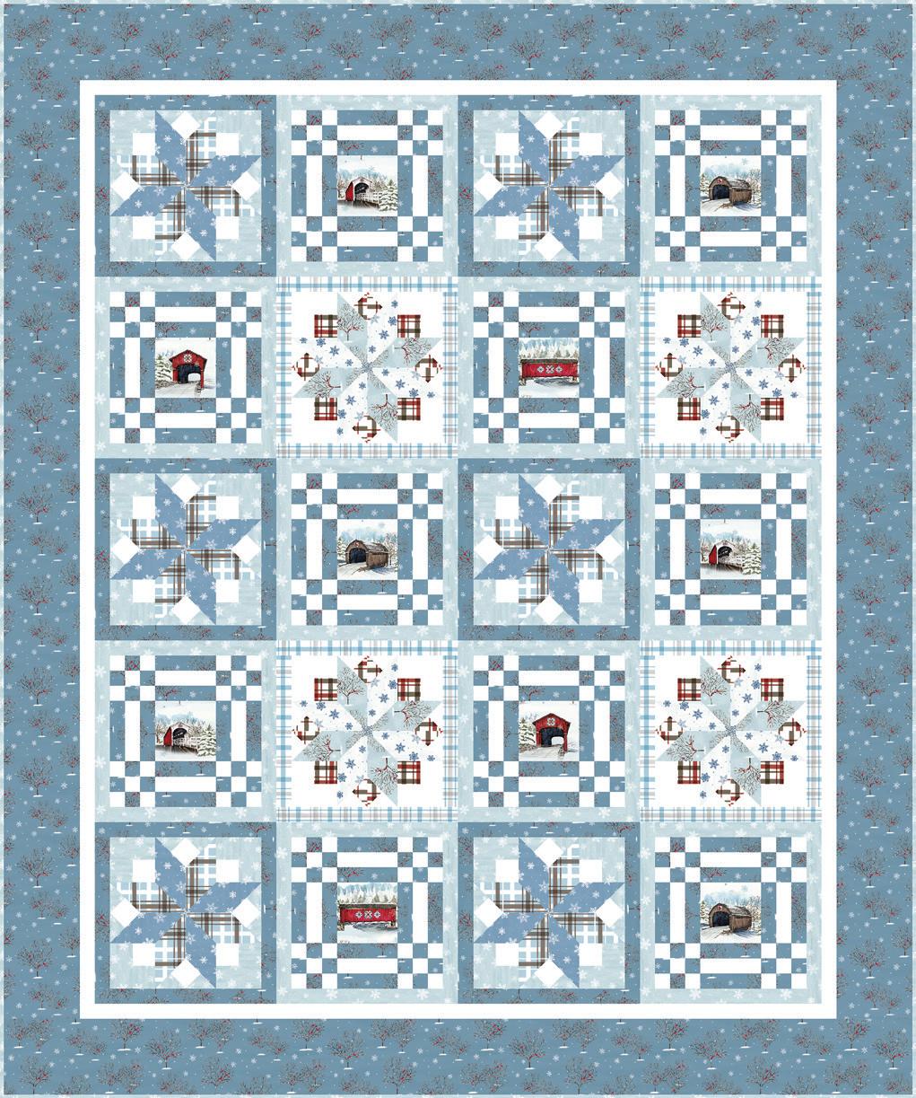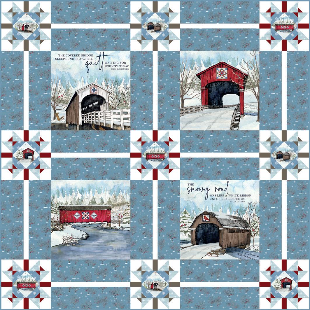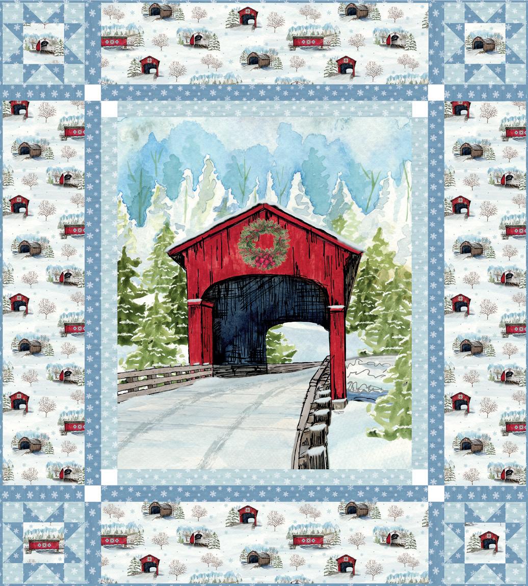 Pre-order the KT-18000 Snowflakes Over Covered Bridges Quilt Kit