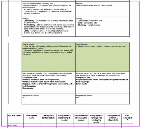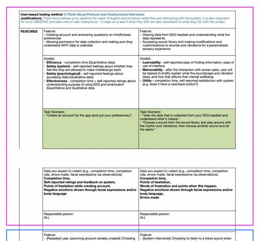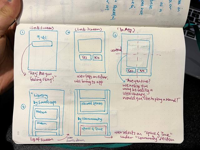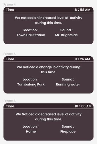 After refining our final concept, we moved on to thinking how we could break down the big idea into smaller tangible aspects of the prototype - hence the 'phases' of our product, and also its development. Individually, we had existing user research data and secondary research knowledge that helped 1. develop the product using the 5W1H (e.g. how data can be collected, or what sounds bring peace), and 2. justify our all of our design choices. From there, each member spearheaded parts of the prototype and development, depending on who had greater knowledge on which. For example, Sarah's focus was on data collection, and Riley's focus was on digital and physical interventions. The rest of the team provided supporting roles, and grew the prototype in tandem.
