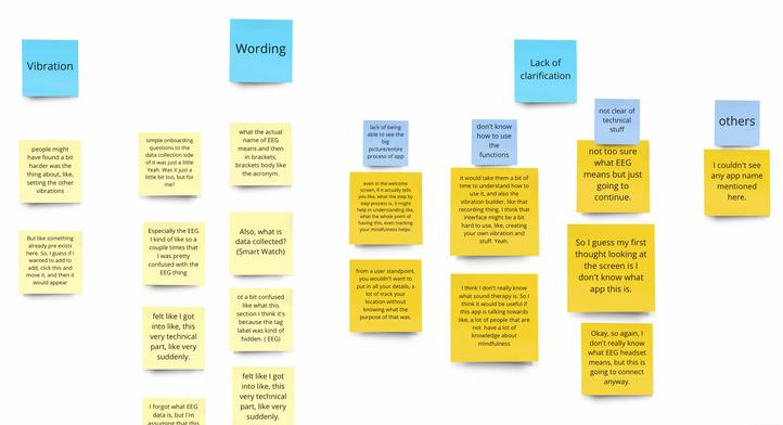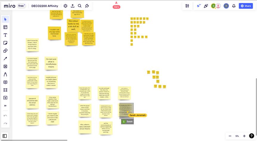 Screenshot of affinity diagramming process on the Miro Board for data analysis