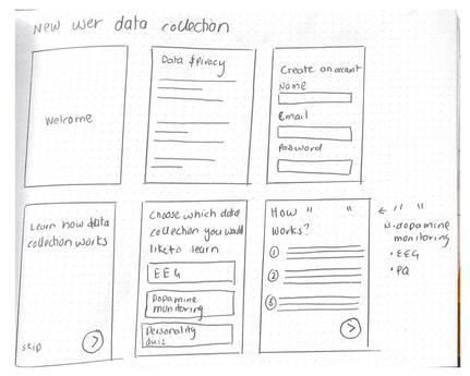 With better concept and task allocations, we moved on to creating sketches, wireframes and high-fidelity prototypes for each of these phases. We had ensured that we generated a main user flow to work alongside. This was a priority - it helped us keep in focus the parts of the prototype that we ought to create for our interactions, which we will later use for our testings (and assignment submission for A2).