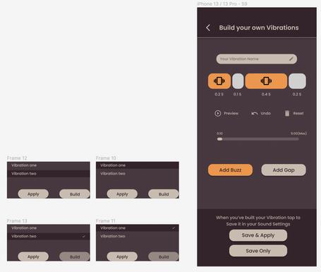 Hence, because playing sounds and customising rhythmic beats and vibrations are important interactions of our app, we added these elements for interactivity, and made some interactions (e.g. hover) more obvious.