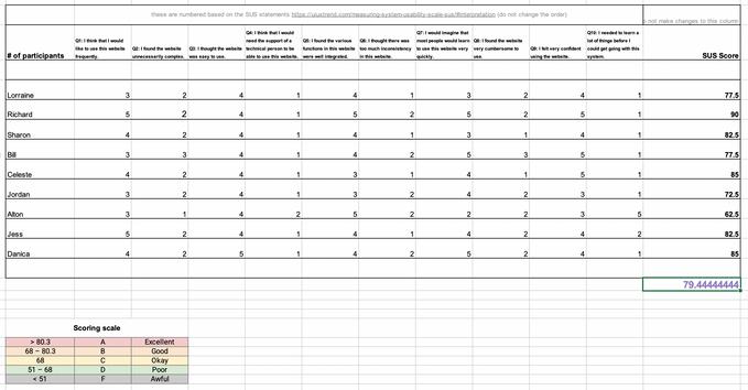 SUS Calculations: https://docs.google.com/spreadsheets/d/177CxD dD lARhiDO13gUMsfDXCJ3p97ys4XJmYRRKlc/edit?usp=sharing
