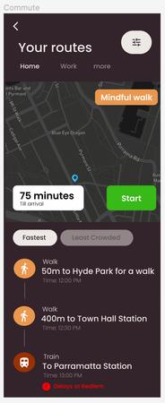Mindfulness practice would be encouraged via the interplay of soundscapes and vibrations. We also aim to empower users with sense of control and knowledge by providing them with data on their physiological responses to their environment while commuting, and offer them alternative routes of commute to ease their emotional distress in the urban environment.