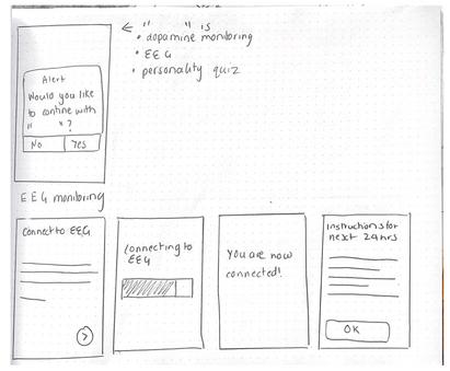 With a clear intention for our user flow diagram, we set out to draw sketches for our prototype. Sketches were important for us to communicate with one another and tie in our ideas, and also gather feedback from one another and other users.