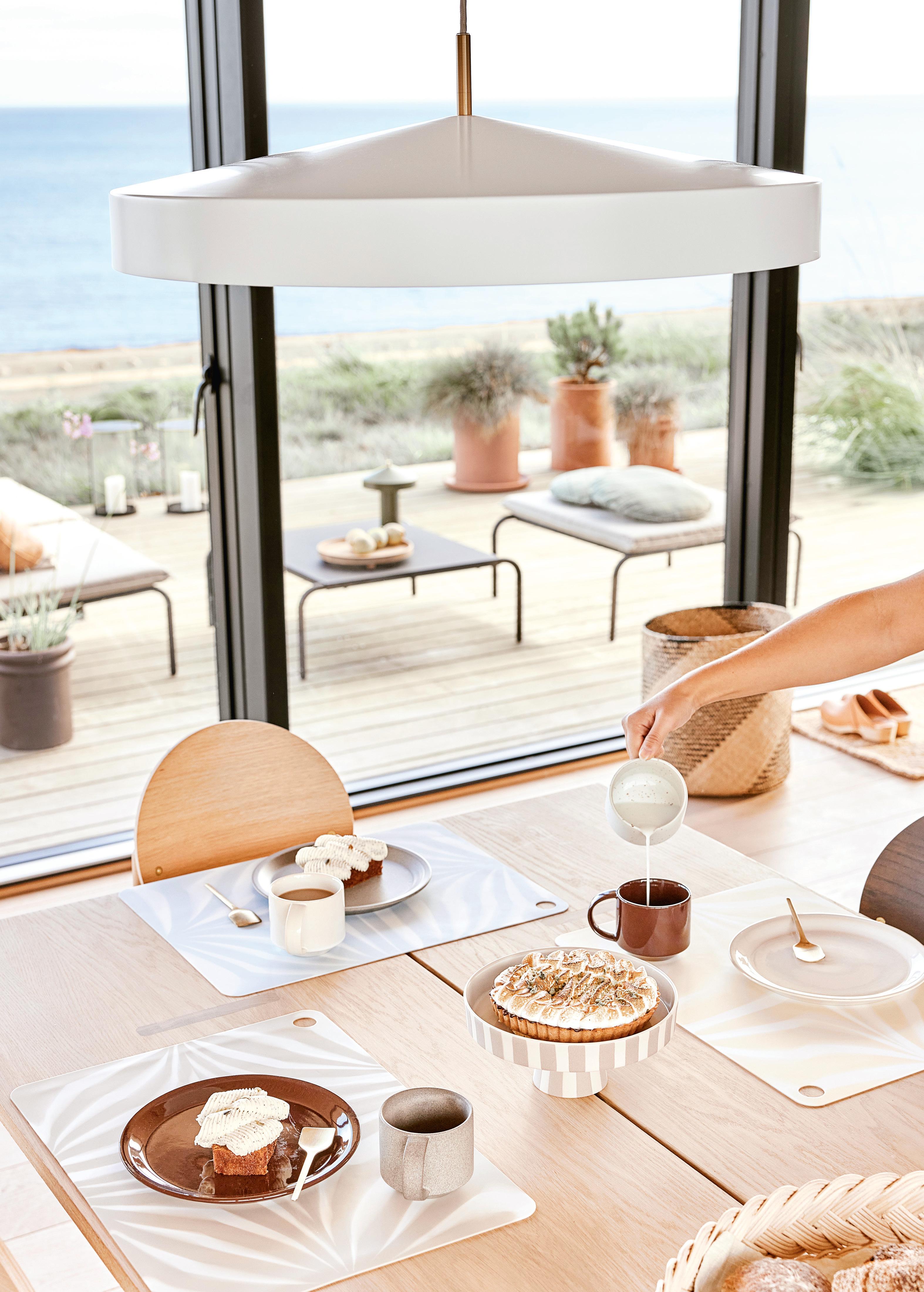 Zebura placemats, £28 for two; Toppu tray, £58; Hatto pendant, £369; Yuka cups, £26 for two; all oyoylivingdesign.co.uk