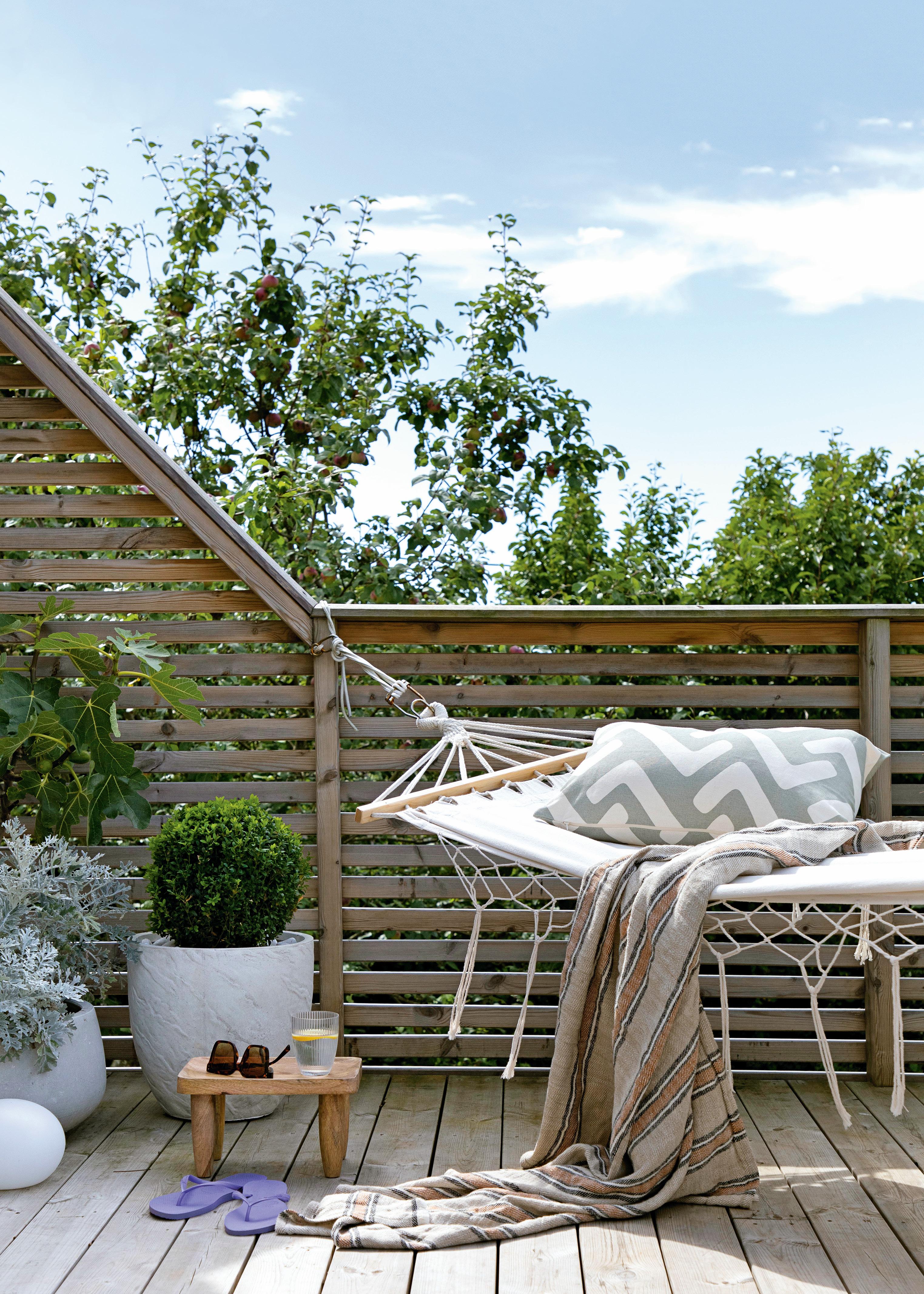 After a rather wet spring, we’re hoping for sun-filled days spent outside, living like a Scandinavian. But first, there’s a few jobs to do at home to get your terrace or garden set for summer. Start by giving any decking a good brush with a stiff-bristled broom, jet-washing if needed. Then create your outdoor Scandi rooms: perhaps a spot to sit and read, a place to dine together as a family, and a bistro table for fika moments with a friend. Cluster planters and outdoor lanterns around each, helping each spot to feel grounded and contained. Finally, add a few Scandi-inspired textiles – shades of honey, denim and cinnamon always look great.