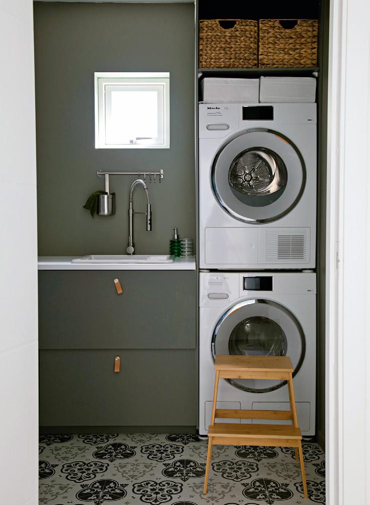 Try using wallpaper in an unexpected place. Whether that’s the inside back of a cabinet or in your utility room, adding a wallpaper can make a big difference: white tableware can suddenly pop, while practical essentials look beautiful against a busy pattern.