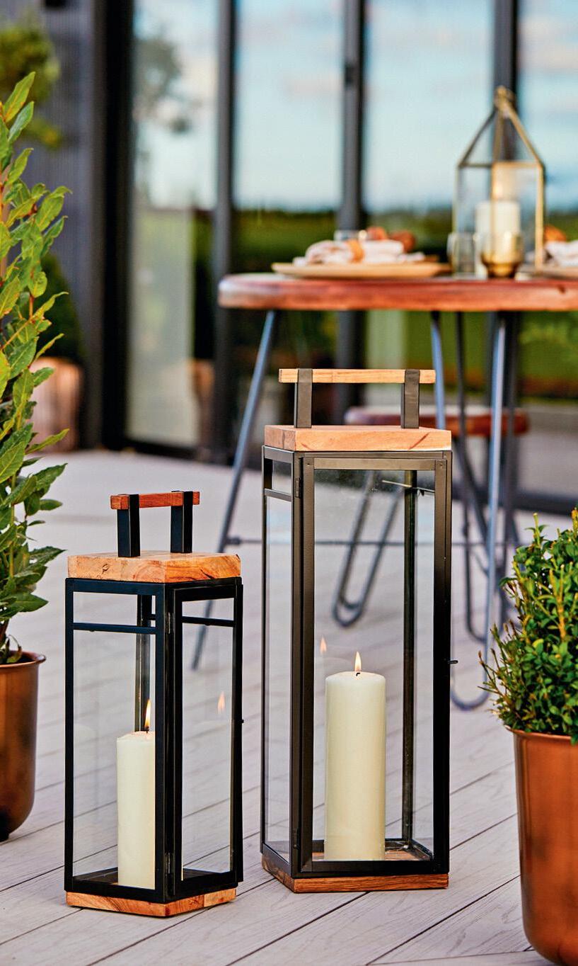 RIGHT Grace lantern in acacia wood and black, from £59.99, ivylinegb.co.uk