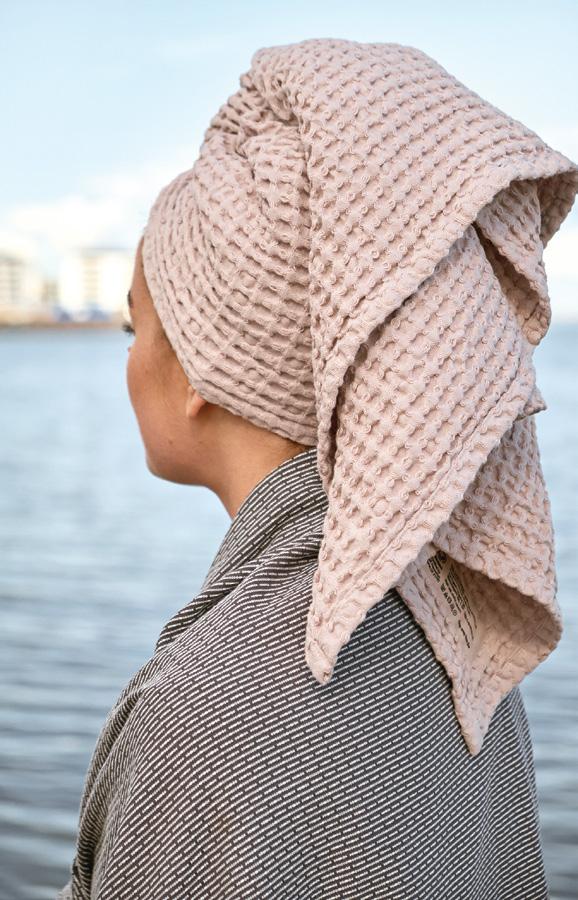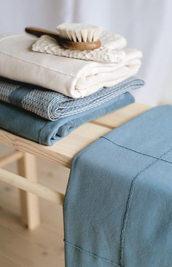 ABOVE From three layers of lightweight gauze to waffle, a lightweight woven fabric and piqué, there’s plenty of towels to choose from at The Organic Company