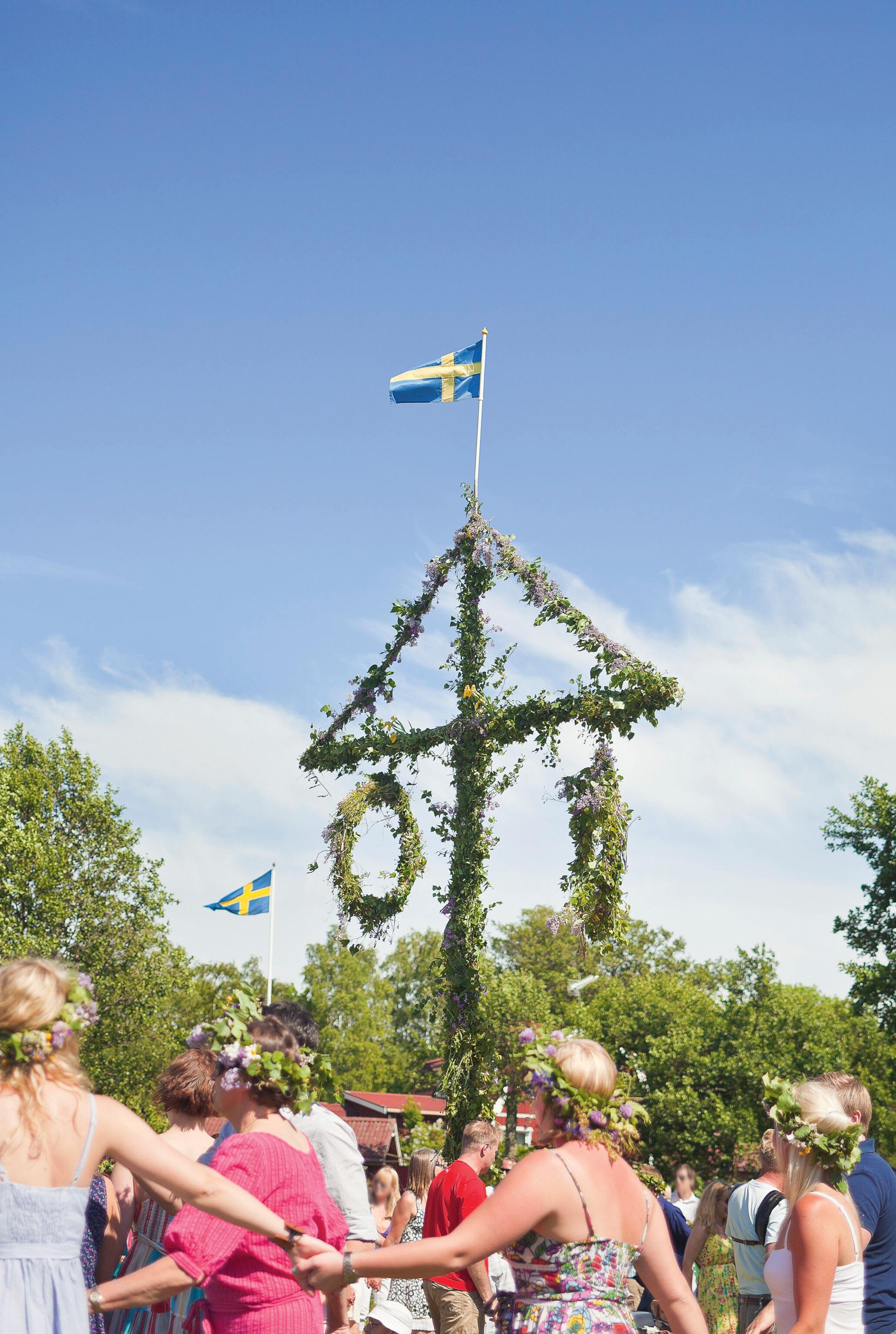 Wear your floral crown to dance around a decorated maypole in Sweden
