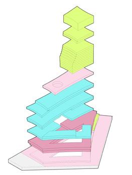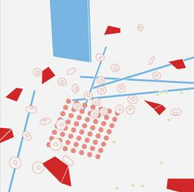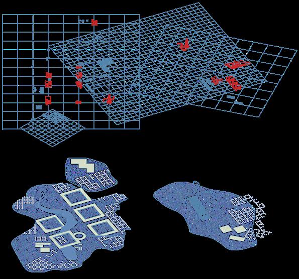 We dropped these shapes to the ground to generate random simulations of structures on the vacant site. This breaks the conventional campus planning and create unexpected layouts.
