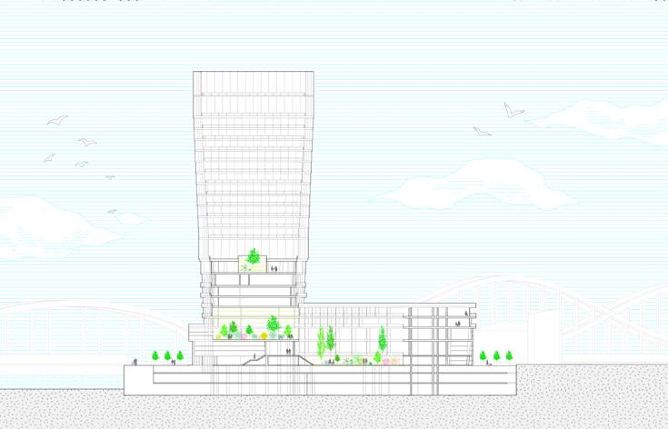 Features include welcoming entrances, sensory gardens, private rehab rooms, and group therapy areas. Green courtyards, sun terraces, and public amenities like a café foster community reintegration while supporting recovery. By transforming the Elbtower into a center for healing, Elbgarden offers a hopeful future for Hamburg, where recovery is dignified and inclusive.