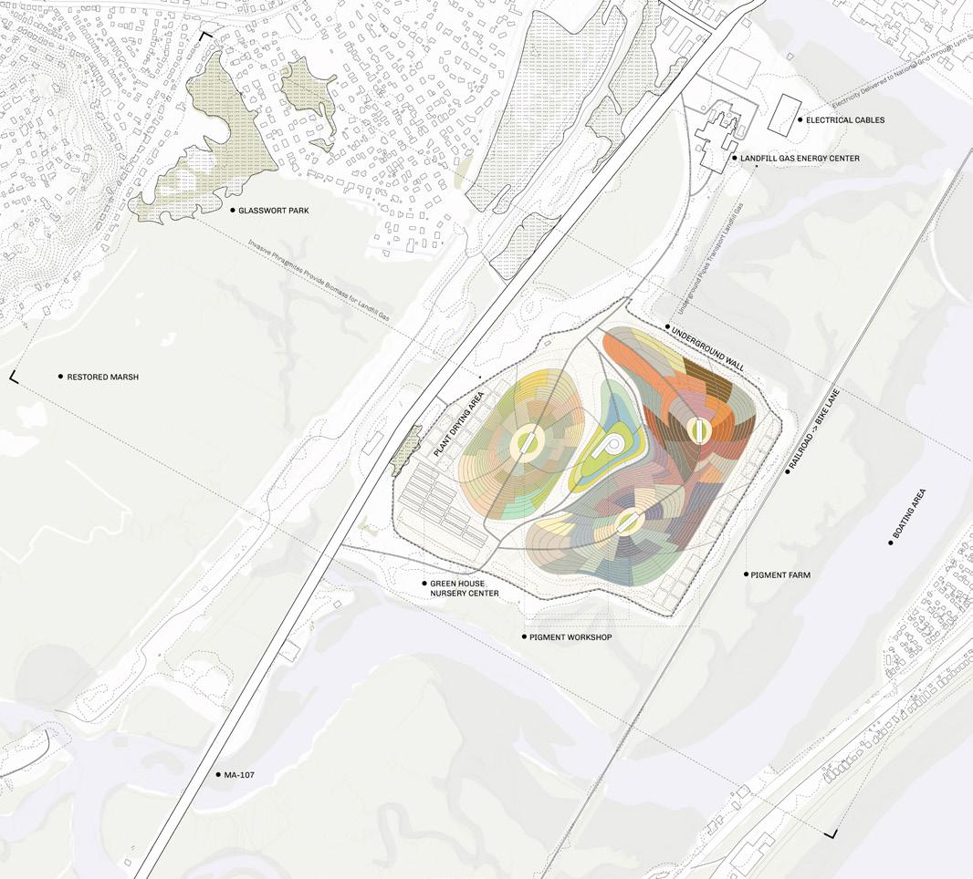Aboveground pigment plants field and underground landfill gas collection system.