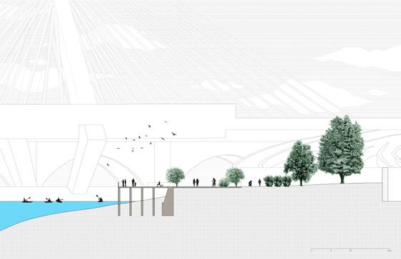 By integrating diverse planting strategies as buffer zones between the highway and the green and blueways, this project aims to leverage the rising sea levels as an opportunity to reimagine the future of Charlestown. The goal is to promote alternative modes of transportation, such as cycling, rowing, and kayaking, enabling people of all ages to conveniently and quickly enjoy the community while enhancing connections with neighboring cities.