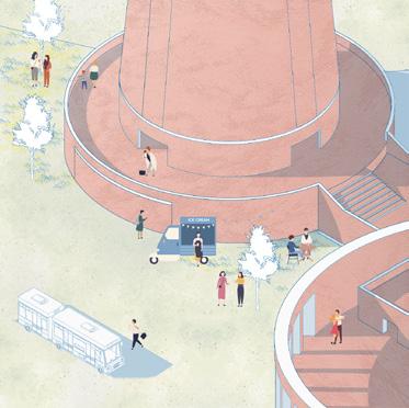 Transportation modes such as walking, bicycles, cars, and cable cars provide a variety of visual and spatial experiences on campus. Meanwhile, the seasonal change in the lake increases students' bond with nature.