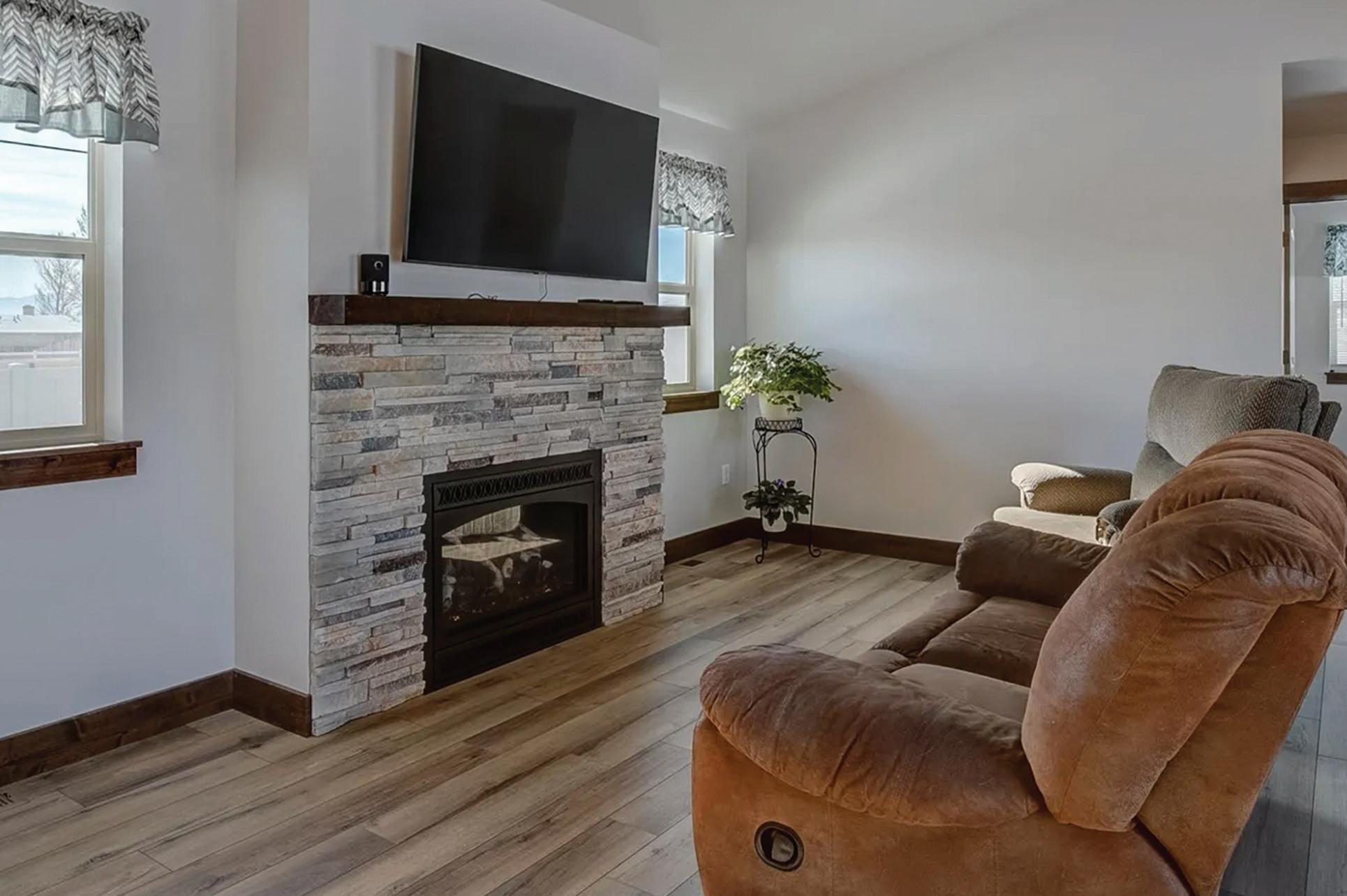 The living room downstairs is perfect for game night, a theater room, or playroom.