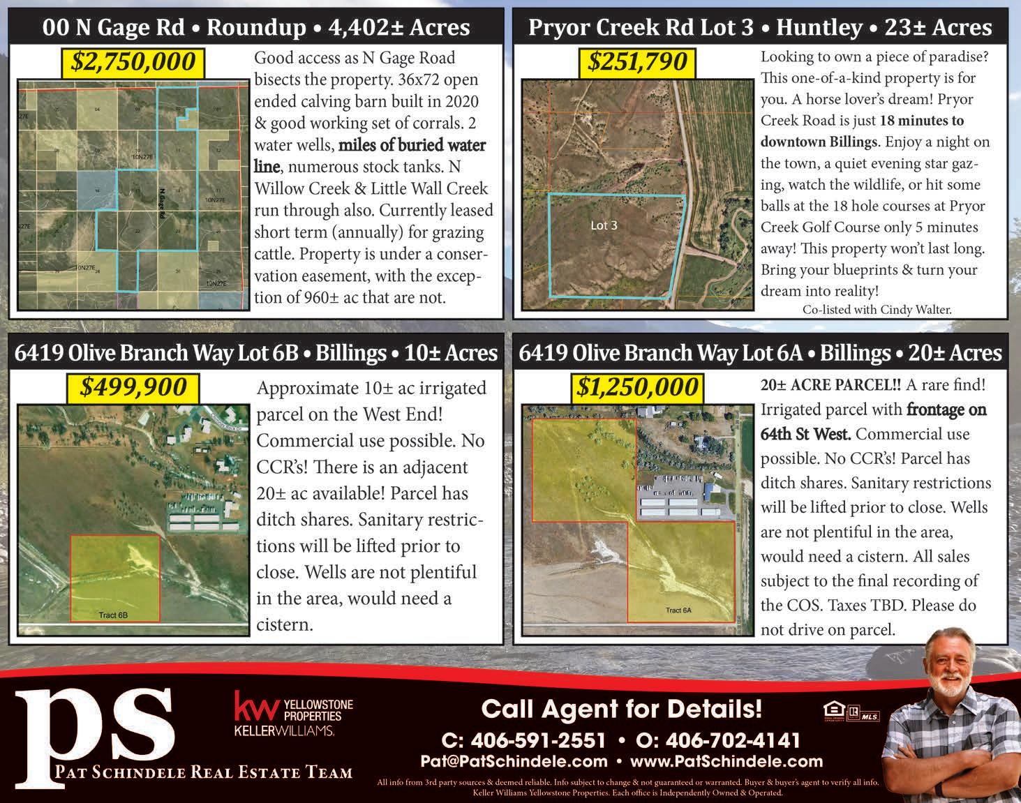 Welcome to Horizon Flats, a breathtaking 157.224-acre property in the heart of Montana’s big sky country. 25 minutes from Billings, this land is perfect for building your dream home, establishing a hobby ranch, or securing a long-term real estate investment. If you’re looking for Montana land for sale with water, power, & privacy, Horizon Flats checks every box. $471,000 - MLS#25008-005083