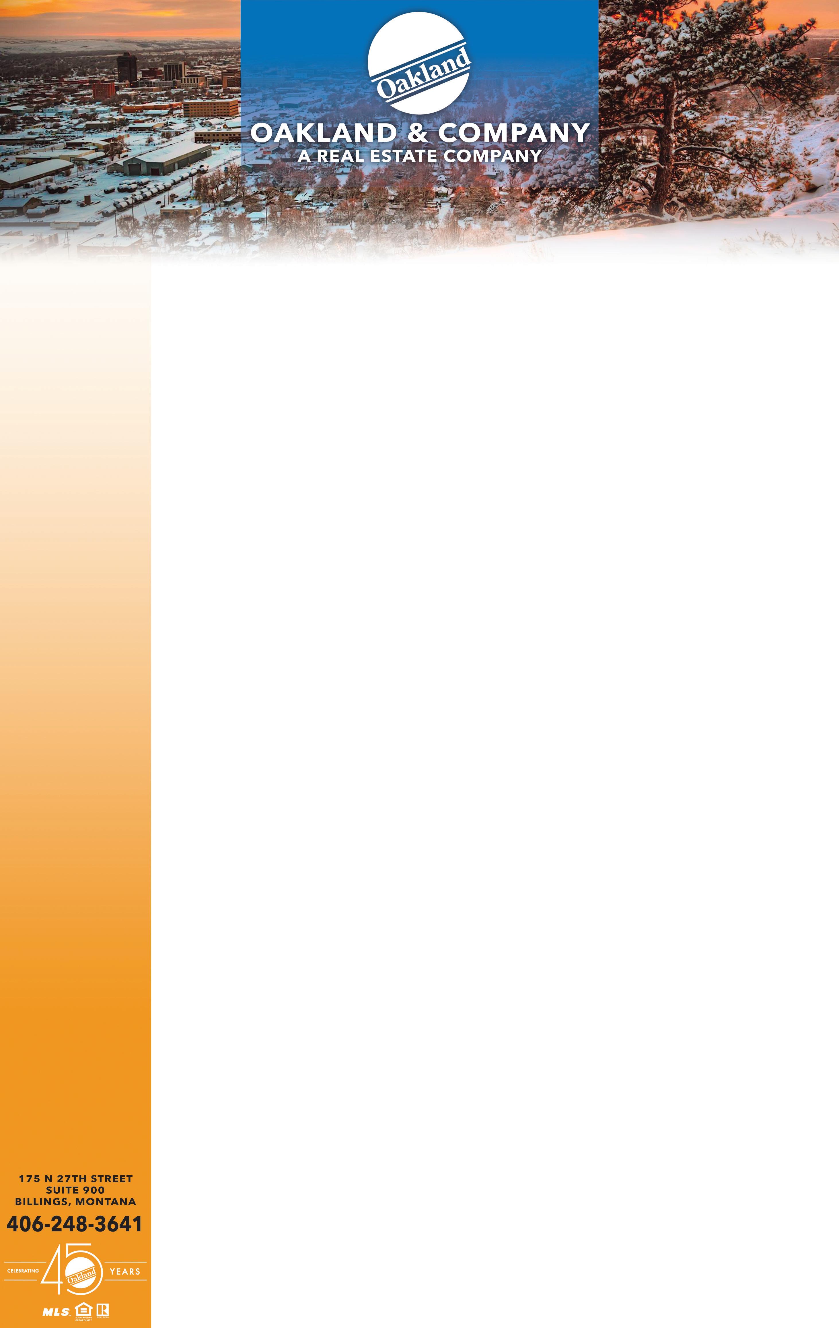 Bring your builder & build the Montana Home of Your Dreams! Over 200 acres in which to choose a premium lot. Open landscapes to inspire you, wilderness adventures at your back door, & a community you can count on. Major infrastructure improvements to provide Billings Public Utilities for water and sewer.. You’ll find yourself among timbers with varied terrain, a small creek, hiking and biking trails. Call us for more more information! CLINT SCHULTZ 406-860-2703 •