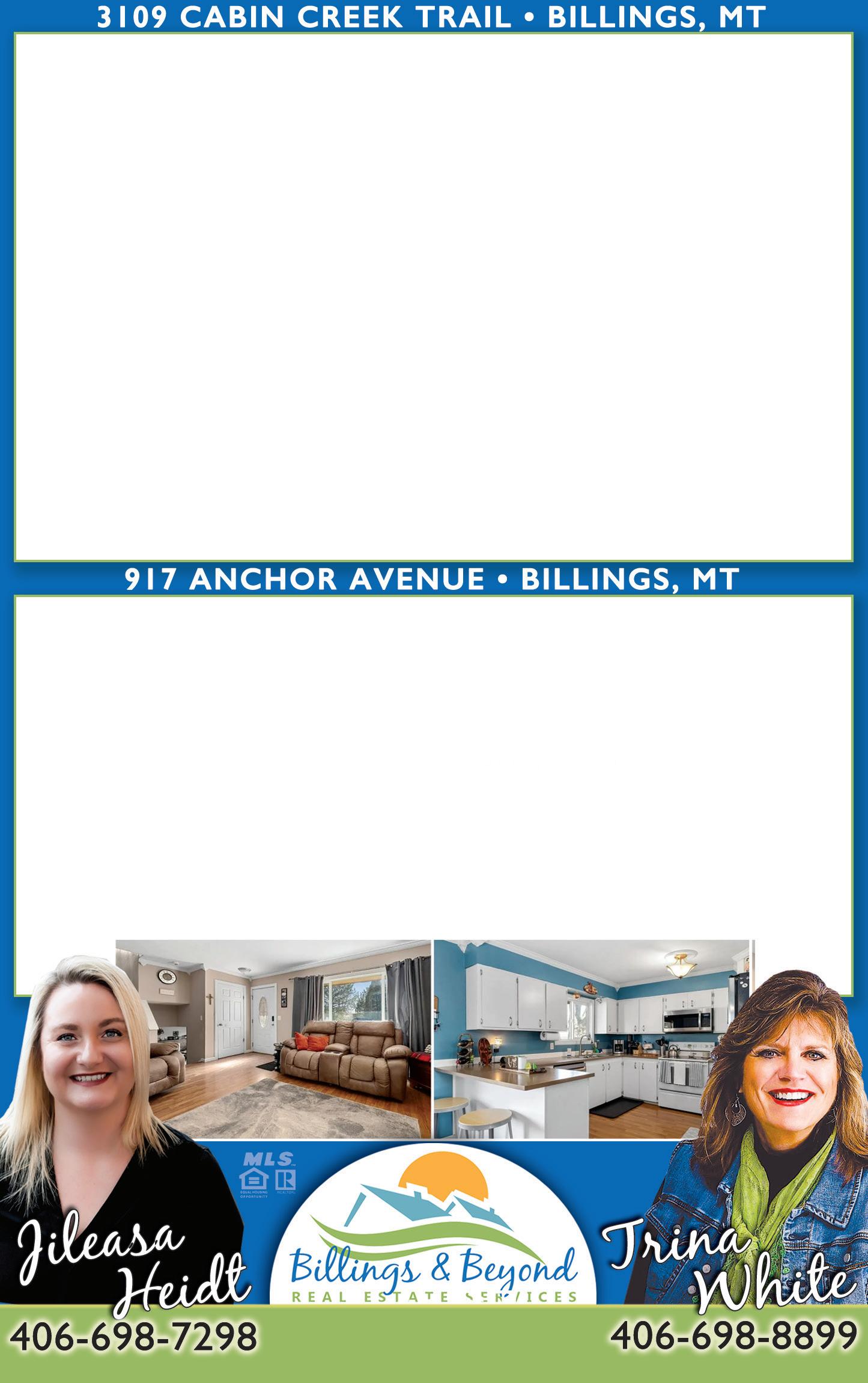 weekly POSTED TO OUR WEB SITE, FACEBLOOK PAGES & INSTAGRAM PAGE! CENTER SECTION FREE OPEN HOUSE LISTINGS! MAPPED ONLINE - Google™ MAPS FREE REAL ESTATE Portfolio Portfolio Spring into a new house! Spring into a house! SEE PAGES 8-9 TO VIEW MORE ON THESE HOMES! PUBLICATION OWNED BY: THE BILLINGS ASSOCIATION OF REALTORS® DESIGNED & PRODUCED BY: RIM ADVERTISING, INC. • 406-656-0608 • WWW.RIMADVERTISING.COM www.BillingsRealEstate.org www.instagram.com/rimadvertisingmt www.Facebook.com/WeeklyRealEstatePortfolio www.Facebook.com/groups/montanaforsale COMMERCIAL LISTINGS: www.MontanaCommercialRealEstate.com FARM & RANCH LISTINGS: www.MontanaFarmsAndRanches.com RESOURCE GUIDE: OPEN HOUSES p 8-10 NEW LISTINGS p14 SPECIALISTS p15 APRIL 4 TH - 10 TH , 2024 VOL. 32 - NO. 13 ealty www.NancySellsMontana.com Nancy@curtissrealestate.com WWW.O AKLAND C OMPANIES .COM LWanner@oaklandcompanies.com CWanner@oaklandcompanies.com call to advertise! 406-656-0608 OFFICE 406-694-9275 CELL