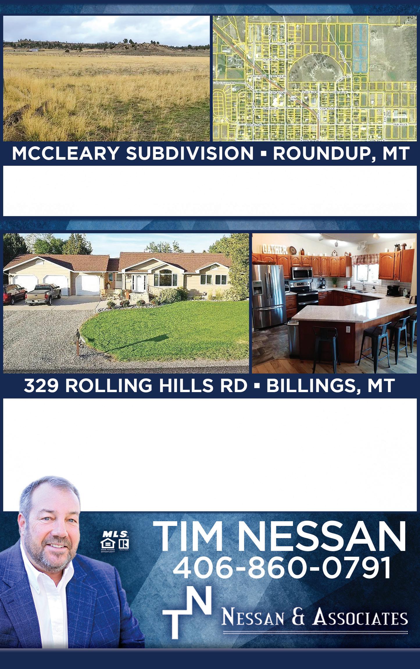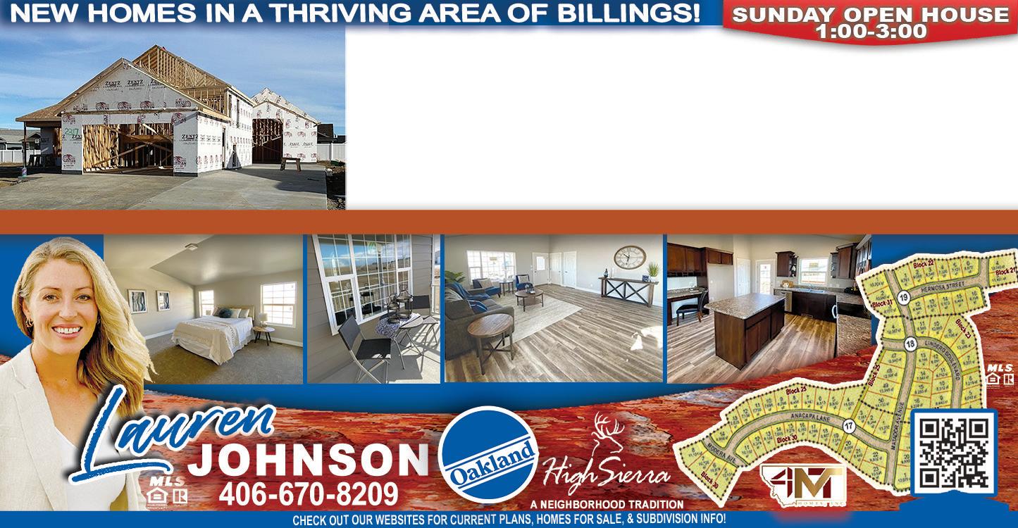 RE AL E S TATE weekly POSTED TO OUR WEB SITE, FACEBLOOK PAGES & INSTAGRAM PAGE! CENTER SECTION FREE OPEN HOUSE LISTINGS! MAPPED ONLINE - Google™ MAPS FREE Portfolio SEE PAGES 10-11 TO VIEW MORE ON THESE HOMES! PUBLICATION OWNED BY: THE BILLINGS ASSOCIATION OF REALTORS® DESIGNED & PRODUCED BY: RIM ADVERTISING, INC. • 406-656-0608 • WWW.RIMADVERTISING.COM www.BillingsRealEstate.org www.instagram.com/rimadvertisingmt www.Facebook.com/WeeklyRealEstatePortfolio www.Facebook.com/groups/montanaforsale COMMERCIAL LISTINGS: www.MontanaCommercialRealEstate.com FARM & RANCH LISTINGS: www.MontanaFarmsAndRanches.com RESOURCE GUIDE: OPEN HOUSES p 10-12 SOCIAL MEDIA INFO..............p 13 SPECIALISTS p 16 LOTS & LAND p 17 NEW LISTINGS.......................p 18 FEB 22 ND - 28 TH , 2024 VOL. 32 - NO. 8 www.AH aus O f R ealty .com www.NancySellsMontana.com Nancy@curtissrealestate.com Open House Sunday 1:00-4:00pm LJohnson@oaklandcompanies.com www.OaklandCompanies.com www.4MThomes.com 851 HERMOSA STREET • BILLINGS, MT 844 HERMOSA STREET - BILLINGS, MT $369,900 - MLS#343680 $379,900 - MLS#343683 3 BEDS • 2 BATHS • 1,342 SF • 9,761 SF LOT 3 BEDS • 2 BATHS • 1,472 SF • 8,446 SF LOT